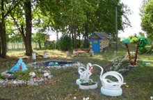 Буген укытучылар Колангы жирлегендәге икмәк кабул иту пункты тирәсендә чәчәкләр утырттылар.