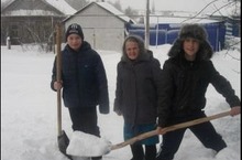 Снег - на крыше, на крылечке...Вот с такими словами сегодня вышли люди из своих домов. Особенная радость у детей - у них сегодня есть возможность поваляться на белом снежном коврике и вместе убирать пушистый снег, соревнуясь с соседями. А тимуровцы на днях сходят к пожилым людям, чтобы помочь им в очистке двора от снега.