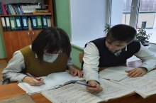 Укучылар дәресләрдән соң "Учи.ру" онлайн-платформада рус теле фәненнән олимпиада биремнәрен үтиләр.