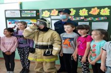 Сегодня-на второй день работы лагеря сотрудники пожарной безопасности ознакомили детей с полезной информацией.