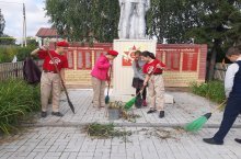 В рамках осенней недели добра юнармейцы 7-8 класса очистили территорию возле памятника павшим воинам