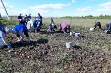 Укучылар, укытучылар һәм мәктәп хезмәткәрләре мәктәп яны участогында кишер,чөгендер алуда катнаштылар. Куелган бурычны күңелле һәм дәрт белән үтәделәр. Афәрин!