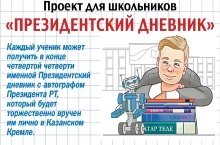 Каждый ученик сможет получить в конце четвертой четверти именной Президентский дневник с автографом Президента Республики Татарстан Рустама Минниханова, который будет торжественно вручён им лично в Казанском Кремле. Как получить один из таких дневников? Отправляйте в редакцию "Комсомольской правды" доказательства своей успеваемости: скриншоты электронных дневников или фотографии/сканы страниц бумажных дневников, где стоят оценки «отлично». Редакция «Комсомольской правды» будет подсчитывать общее количество пятерок, полученных в течение всей четвертой четверти по всем предметам. Победителями станут ученики, у которых будет больше всего пятерок, полученных в течение всей четверти. Школьники разбиваются на 3 возрастных категории (по классам): 2-4, 5-9, 10-11.