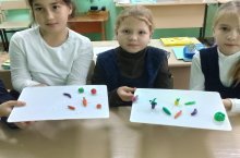 На уроке технологии лепили осенний урожай.
