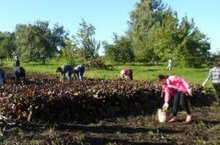Мәктәп яны тәҗрибә участогында өлгергән уңышны җыеп алу дәвам итә. Чөгендер уңышы җитәрлек күләмдә җыеп алынды һәм сакларга салынды.