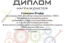 Врспитанники кружка под руководством Гарифуллина С.Ш. приняли участие в номинации: «Техническое моделирование». Гарифуллин Эльмир занял II место. Саттаров Ильфар удостоился I места. Молодцы ребята!