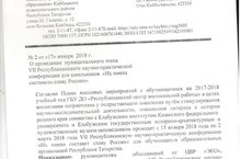 Приказ о проведении муниципального этапа VII Республиканского научно-практической конференции для школьников «Их имена составили славу России». 02.02.2018