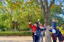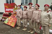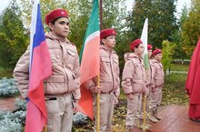 На фото: юнармейцы отряда имени Героя Советского Союза имени А. Е. Кошкина на осенней, школьной ярмарке.