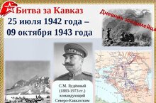 Битва за Кавказ началась 25 июля 1942 и стала одной из самых продолжительных в Великой Отечественной войне. Она длилась 442 суток (с 25 июля 1942 г. по 9 октября 1943 г.) и вошла в историю военного искусства как комплекс оборонительных и наступательных операций, проведенных на обширной территории в сложных условиях степной, горной и горно-лесистой местности, на приморских направлениях.