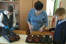 Объединение "Друзья природы" ухаживают за саженцами, которые сами посадили в феврале месяце.