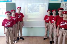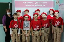 Координатор Сахарнова О.А. с юнармейцами отряда имени кавалера ордена Трудового Красного знамени Е.Г. Тутаева провели классный час, посвященный Дню юного героя антифашиста.
