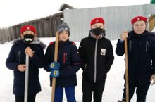 Юнармейцы отряда имени полного кавалера орденов Славы И.П.Субботина МБОУ 'Ульянковская ООШ' и отряд кавалера ордена Красной звезды имени В.М. Драндрова принимают активное участие в акции ' Снежный десант' Сегодня они помогли расчистить дорожки от снега ветерану педагогического труда Шаландиной В.И.