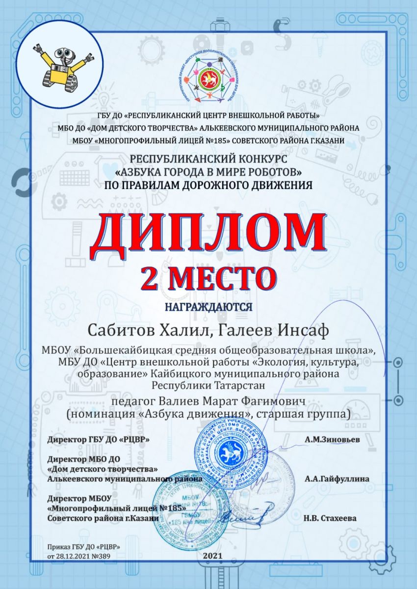 Диплом второе место_ рук_ Валиев М_Ф_ Сабитов_ Х_, Галеев И.
