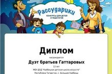 Выпускники Кайбицкой детской школы искусств, братья Рамиль и Ранис Гаттаровы (руководитель: Яруллина З.М) приняли участие в заочном туре Всероссийского творческого конкурса: «Рассударики» в номинации: «Вокальное и музыкальное творчество». Они исполнили «Романс» из музыкальных иллюстраций к повести А.С.Пушкина «Метель» (авт.Г.Свиридов) и удостоились Диплома Победителя (II место). Ансамбль «Кайбицы» (учащиеся Хисамов Инсаф, Гаттаров Рамиль, Гаттаров Ранис, Макарова Арина, Тазутдинова Кадрия, Губаева Регина) в той же номинации исполнили татарскую народную песню «Зариф» в обработке Р.Ахметшина и награждены Дипломом Победителя (I место). Руководители: Яруллина З.М. и Гирфанова Р.Р.
