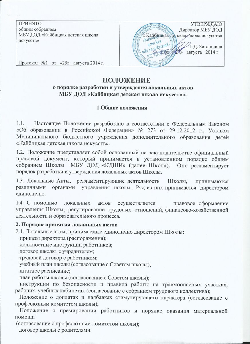 Устав МБУ ДО "Кайбицкая детская школа искусств" (новая редакция)