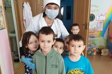 Фельдшер Малокайбицкого ФАП Сабирова Г.В. посетила детей в детском саду.