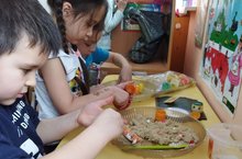 Ком белән эшләү баланың киң фикерләү сәләтен үстерүгә, математик, тикшеренү сәләтләрен формалаштыруда ярдәм итә. Бакчабызда балалар комда рәсем ясарга, аннан төрле фигуралар ясарга яраталар.