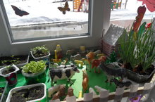 Балалар бакчасында тәрәзә төбендә яшелчә бакчасы булдыру бик күңелле шөгыль булып тора, бигрәк тә кышын һәм язын. Бу вакытта табигатьнең әле генә өлгергән бүләкләрен ашап карыйсы гына түгел, яшеллекләрнең төсен күрәсе килә. Синең үзеңнең тәрәзәң төбендә, беренче язгы яшеллекнең үсүеннән дә күңеллерәк бернәрсә дә юктыр мөгаен. Болар: суган, петрушка, укроп һәм хәтта салат яфрагы да булырга мөмкин. Тәрәзә төбендәге яшелчә бакчасы – табигатьнең төсләренә, җылысына карата булган сезонлы ямансулыкны бетерүнең иң әйбәт бер ысулы да ул. Бүлмә шартларында үсемлекләрне ничек карап үстерергә, үсемлекләр үссен өчен яктылыкның, җылылыкның, туфракның дымлылыгының кирәк булуы турында балаларның күзаллауларын киңәйтү, танып белү һәм иҗади сәләтләрен үстерү.