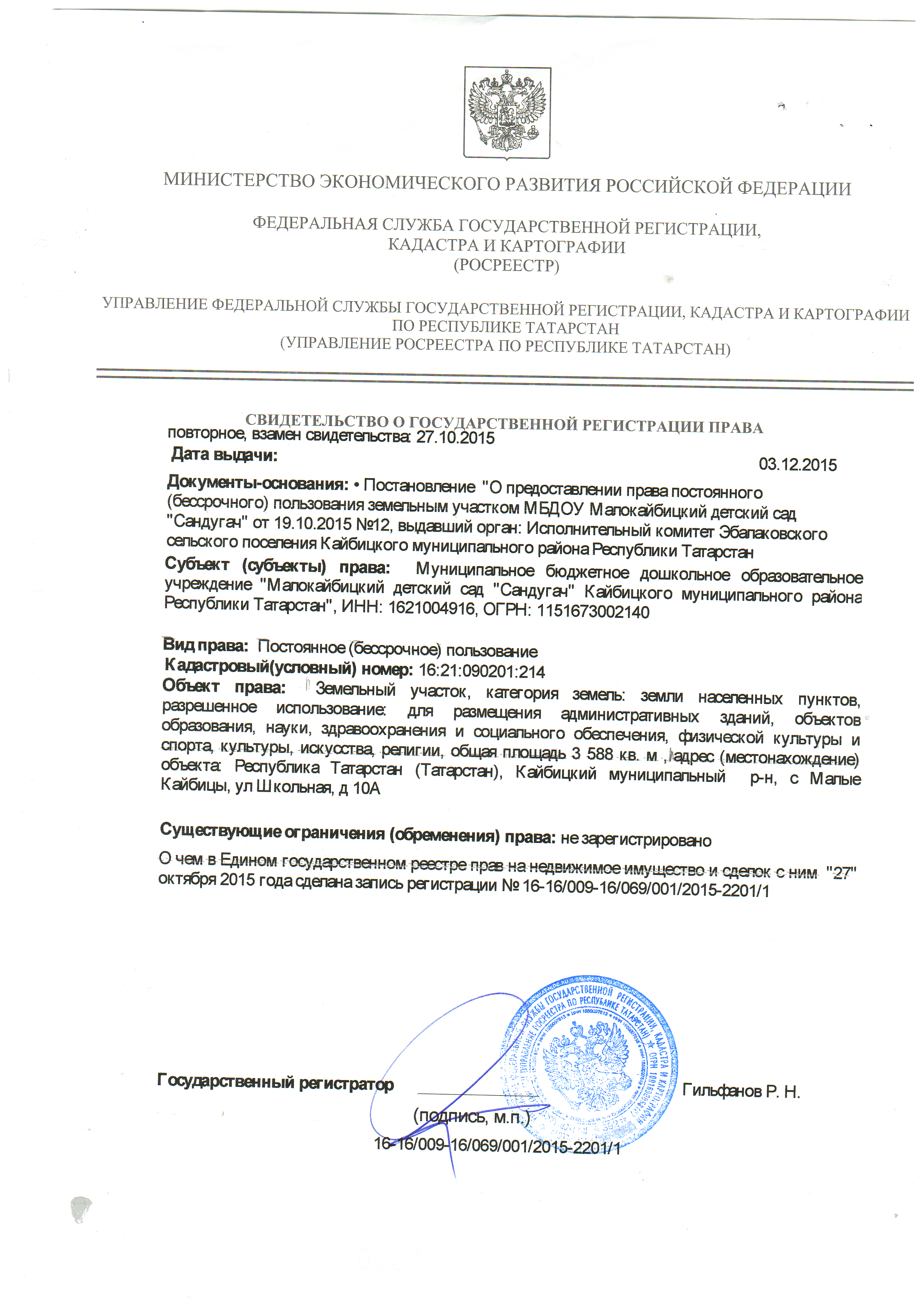 Свидетельство о государственной регистрации права