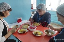 Сегодня в школе работал родительский контроль по организации горячего питания обучающихся. Комиссия родителей проверила соответствие приготовленных блюд утвержденному меню. Контрольную порцию. Замечаний к организации питания нет