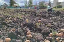 Сегодня ученики 5-9 классов, учителя и сотрудники школы после уроков собрали богатый урожай картофеля из пришкольного участка.