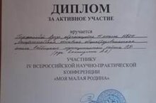 Ученица 8 класса Гирфанова Азиза участвовала на IV Всероссийской научно-практической конференции "Моя малая родина" и награждена дипломом участника. Поздравляем Азизу и руководителя, учителя истории Калимуллина Айрата Азатовича. Желаем новых побед!