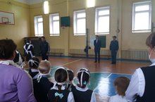 Куркынычсызлык айлыгы уңаеннан, бүген укучылар белән очрашуга балигъ булмаганнар арасында хокук бозуларны профилактикалау инпекторы Зарифуллин Инсаф Илмасович килде. Ул укучыларга җәмгыятьтә үз- үзеңне тоту һәм саклану кагыйдәләрен аңлатты.