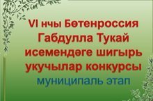 10 нчы март көнне «ЭКО» өстәмә белем бирү учреждениесе базасында Г. Тукай исемендәге VI Бөтенроссия уку бәйгесенең муниципаль туры булып узды. Бәйгедә катнашучылар: Владимирова Дарья, Петухова Диана, Львова Мария.
