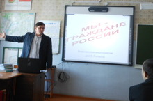 13 марта в школе был проведен КВН на тему «Мы - граждане России» между 2-мя классами. Данное мероприятие было проведено с учащимися 6 и 7 класса. Подготовил и провел конкурс, учитель истории Капралов В.И. Конкурсные задания были не простыми. Во время конкурсов между участниками шла напряженная борьба. Учащиеся показали отличные знания в области права.
