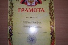 Ученица 11 класса Демьянова Елена Сергеевна, заняла 1 место в районном этапе конкурса сочинений о профессиях "Билет в будущее" в номинации "Моя будущая профессия". Она награждена ценным подарком и грамотой. Председателем конкурса является И.Г.Канашов
