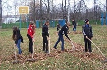 Учащиеся с 5 по 10 класс, после 3 урока совместно с классными руководителями участвовали в уборке территории школы. Они очистили от опавшей листвы спортплощадку и прилегающую территорию.