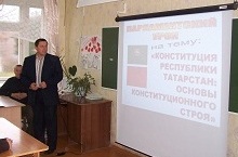 Учитель истории Капралов Валерий Иванович в 8-11 классах провел парламентский урок по теме: «Конституция Республики Татарстан: Основы конституционного строя». На урок были приглашены депутаты: глава Старотябрединского СП Тимофеев В.Г., Яковлев В.И., депутат Молькеевского СП, которые приняли участие в обсуждении темы. Тимофеев Виталий Григорьевич подробно осветил особенности современного выборного законодательства. Ознакомил с работой депутата, на жизненных примерах показал взаимосвязь между понятиями «правовое государство» и «гражданское общество, «местное самоуправление». -
