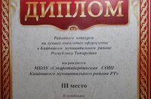 В преддверии Нового года наша школа приняла активное участие на районном конкурсе на лучшее новогоднее оформление образовательных организаций. По результатам оценок жюри наша школа заняла почетное 3 место в номинации "Лучшее новогоднее оформление образовательных организации Кайбицкого муниципального района РТ". Молодцы!