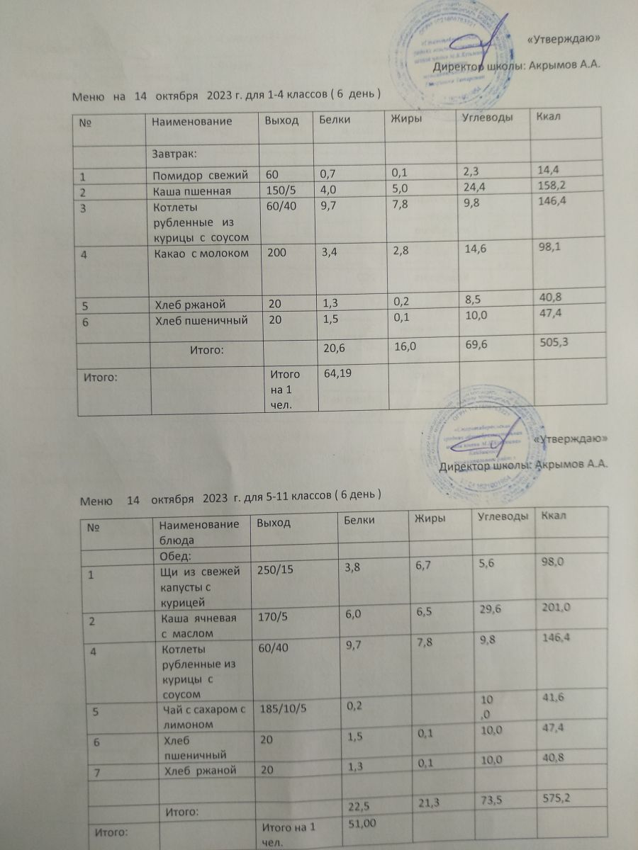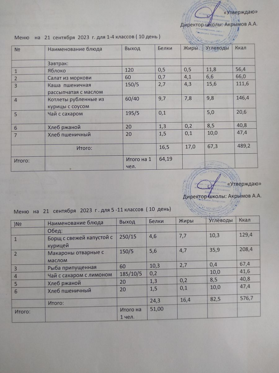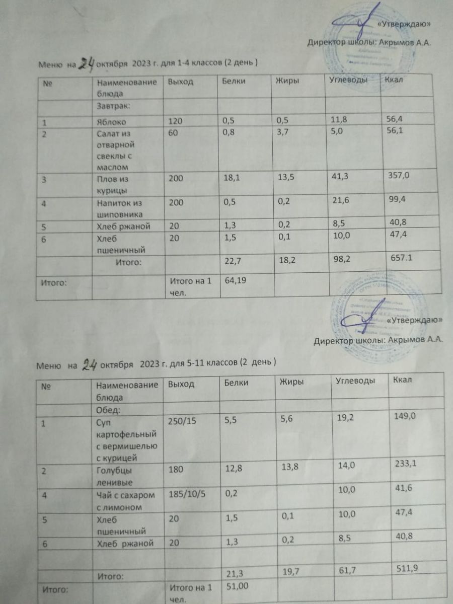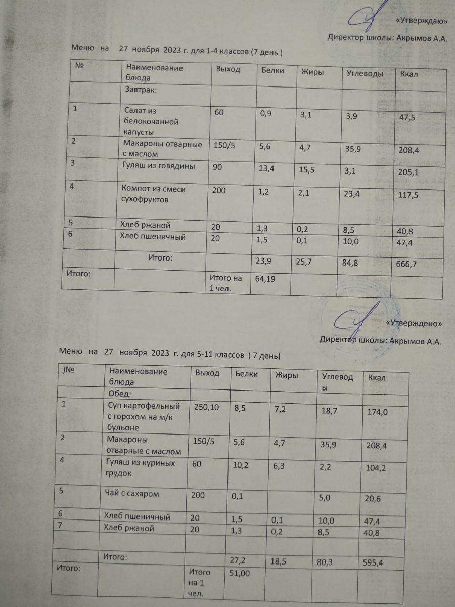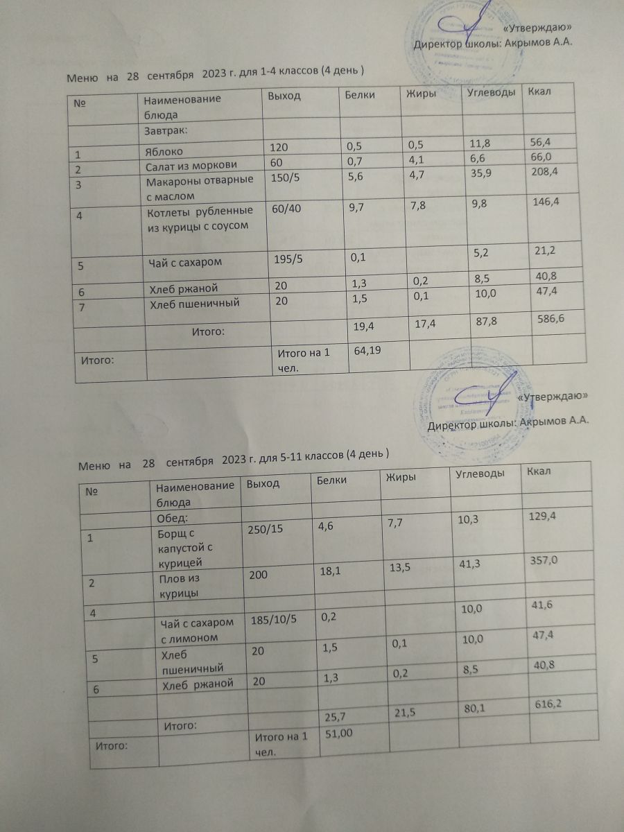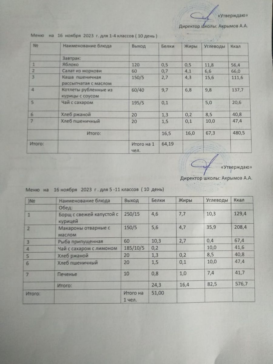 Ежедневное меню учащихся 1-4, 5-11 классов на 2023-2024 уч.год