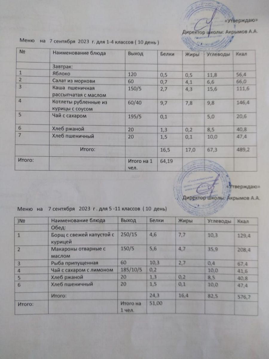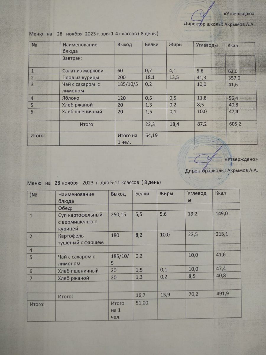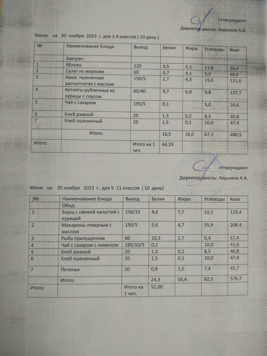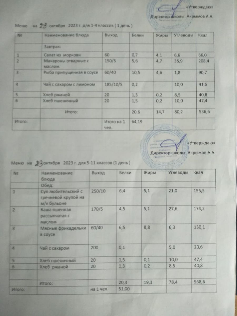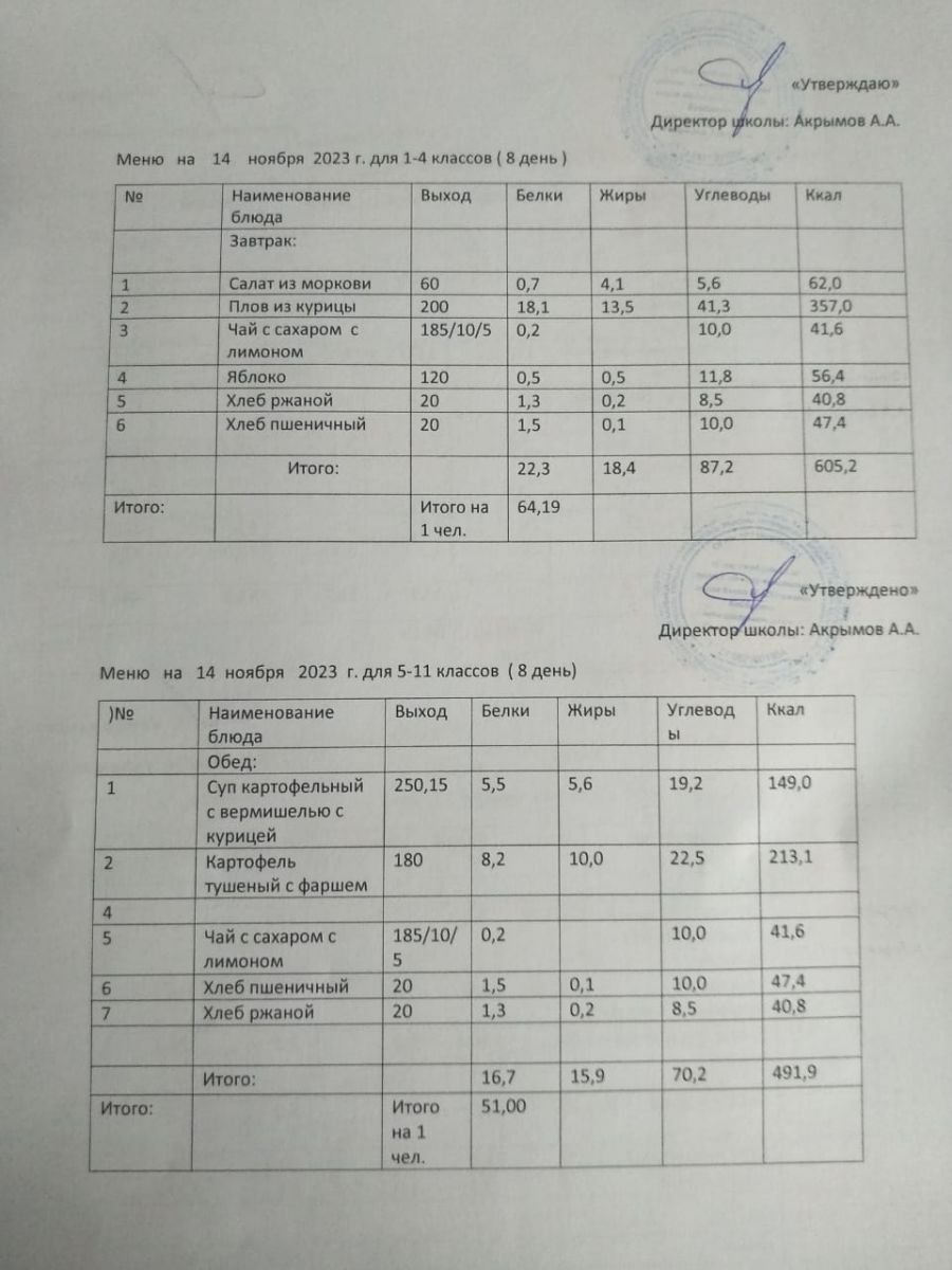 Ежедневное меню учащихся 1-4, 5-11 классов на 2023-2024 уч.год