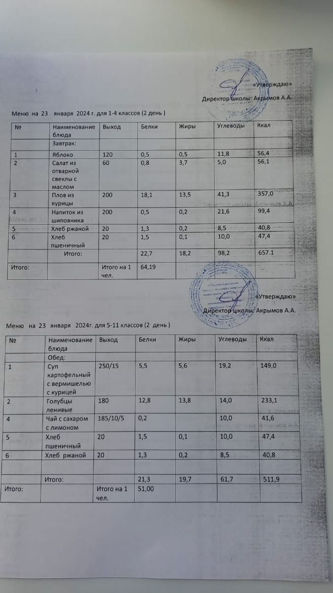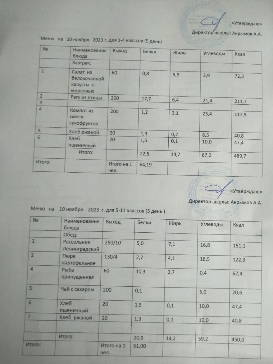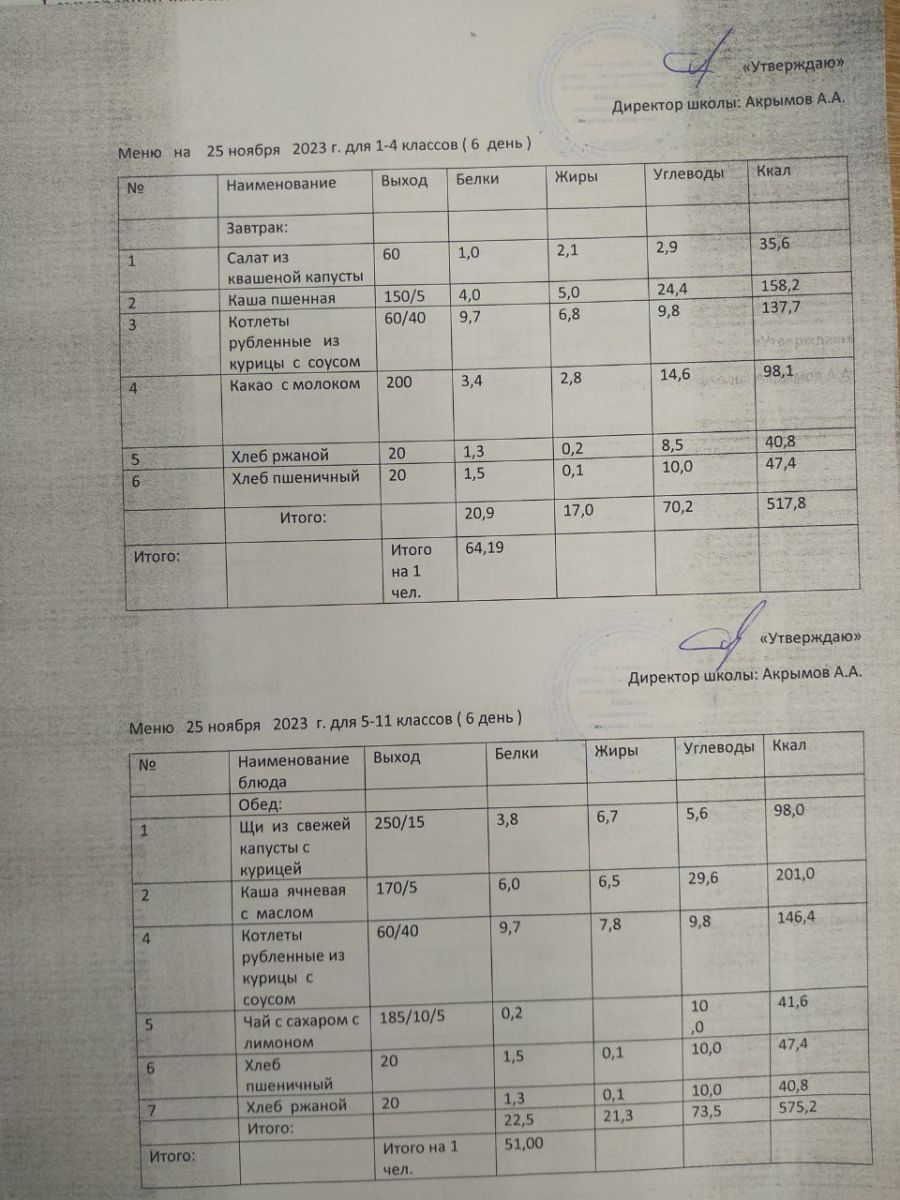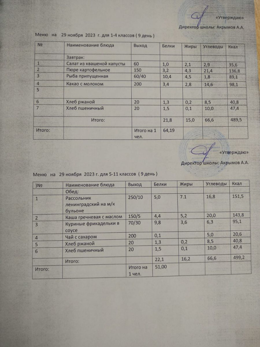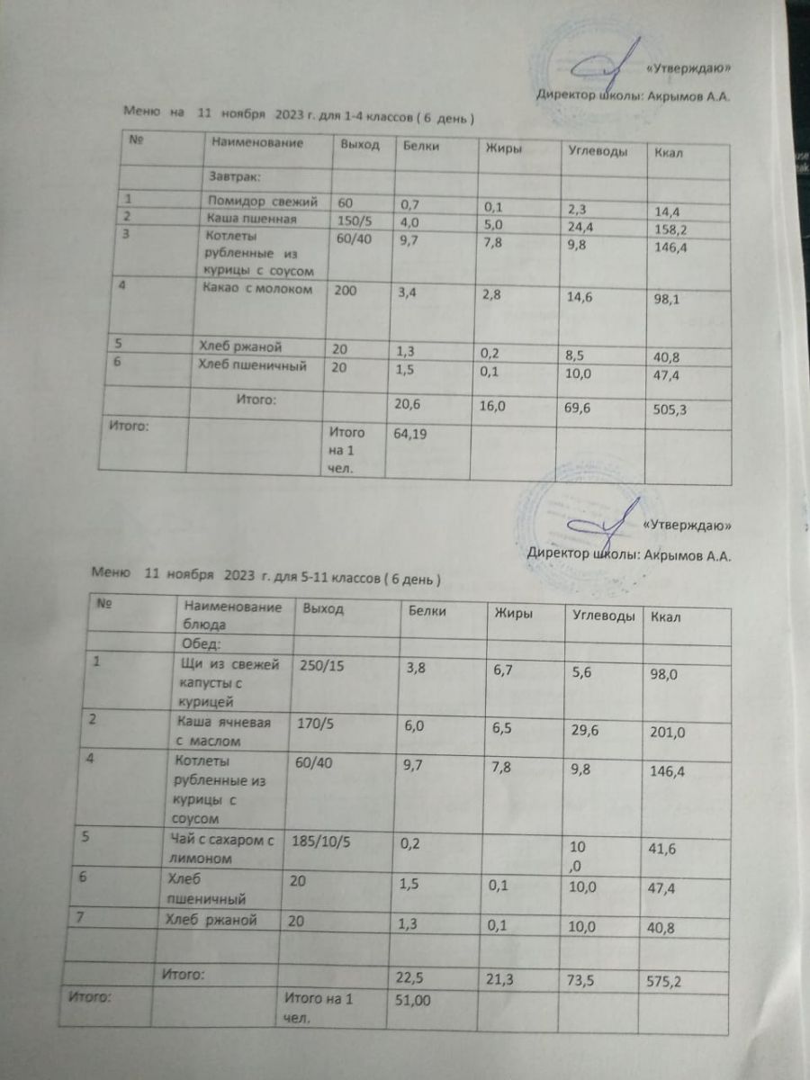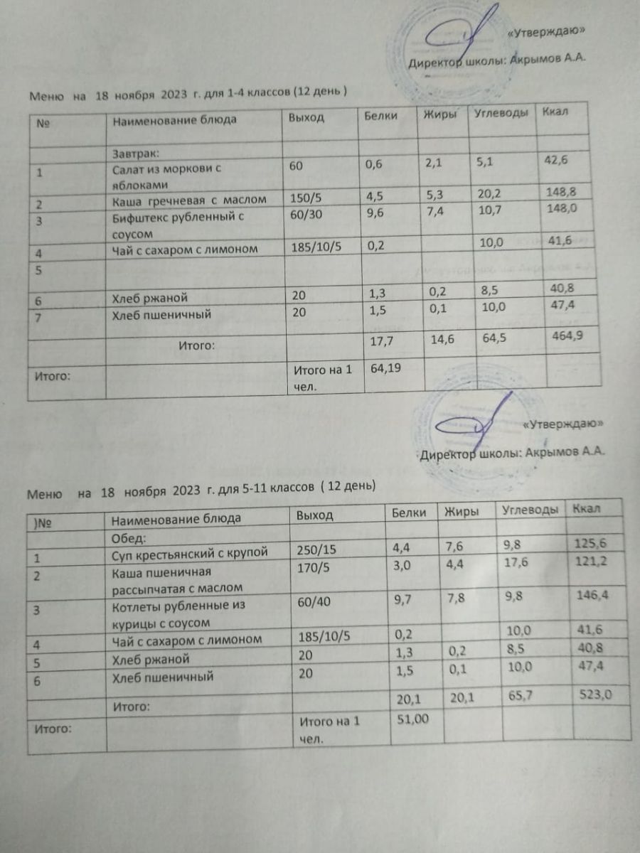Ежедневное меню учащихся 1-4, 5-11 классов на 2023-2024 уч.год