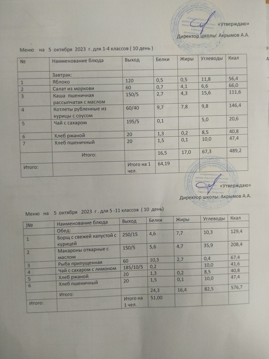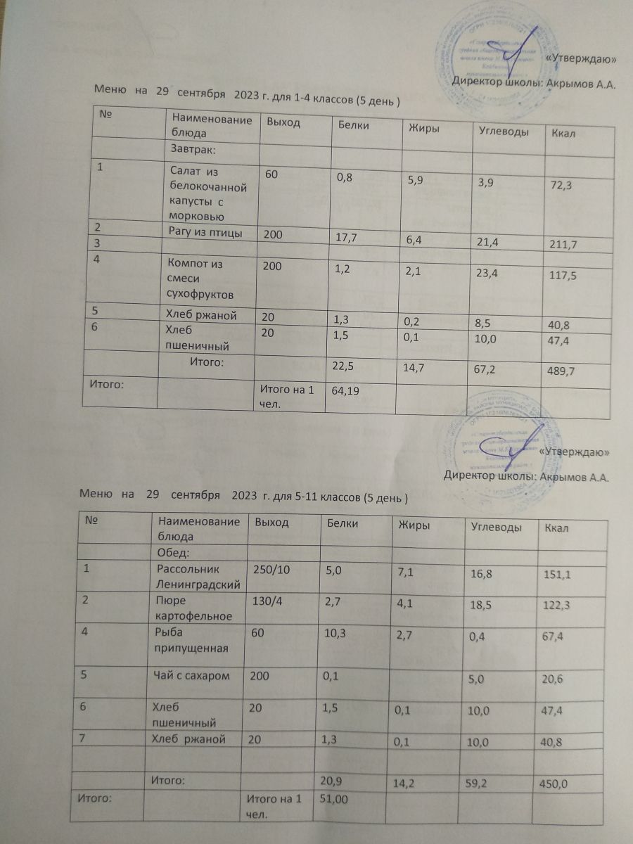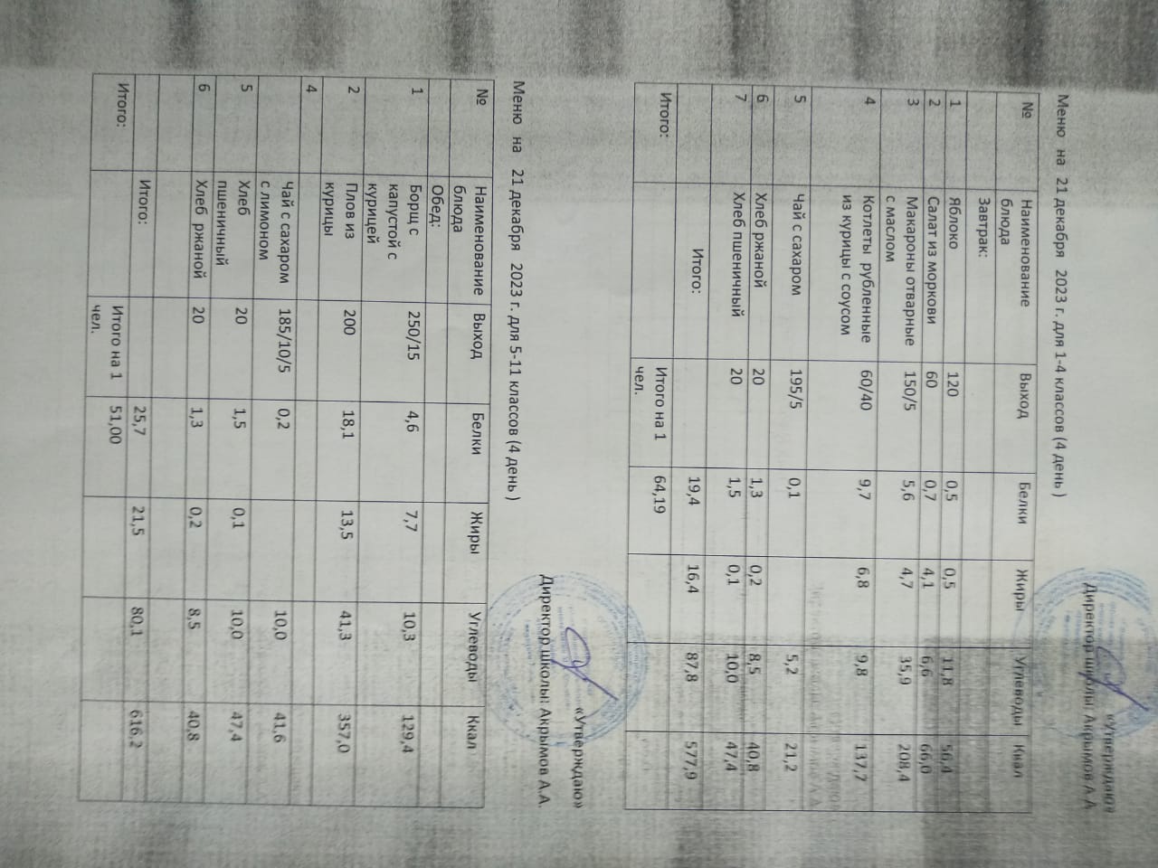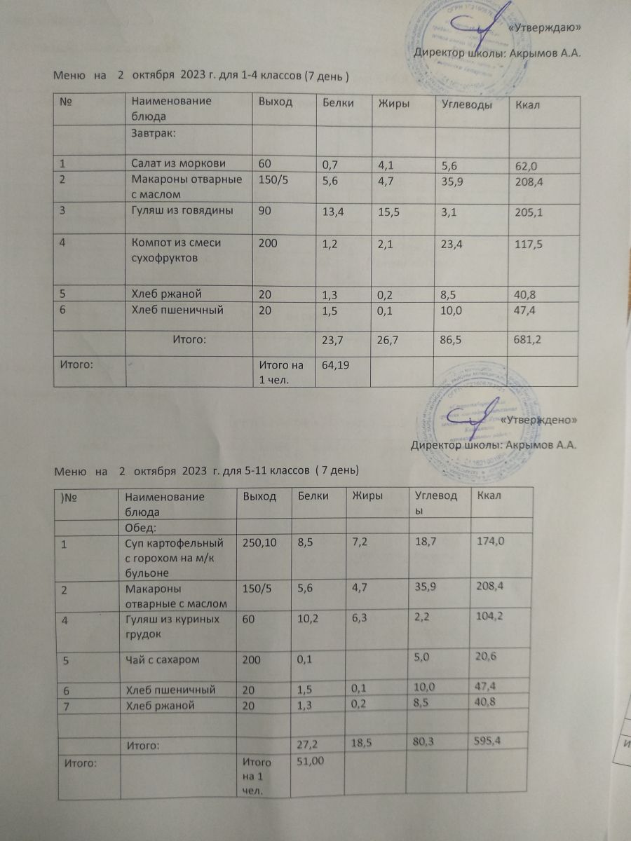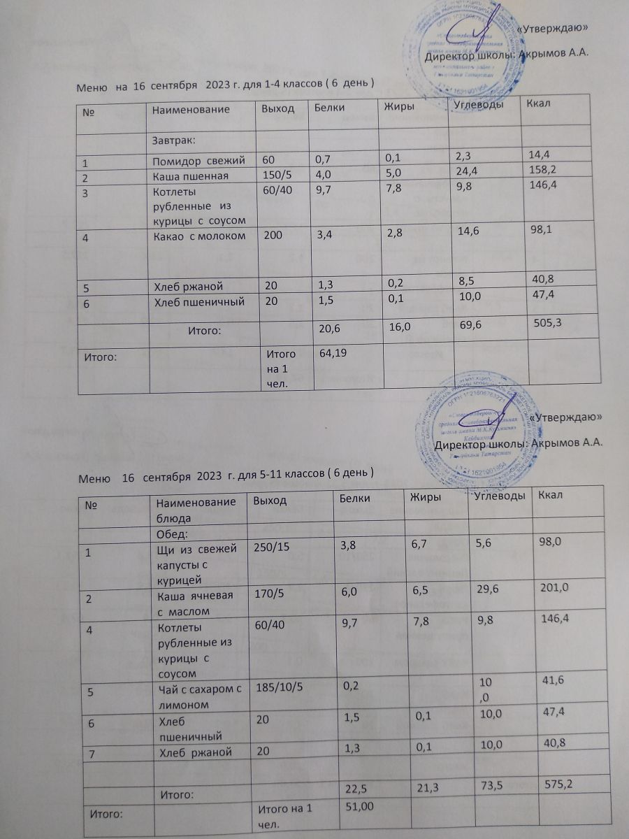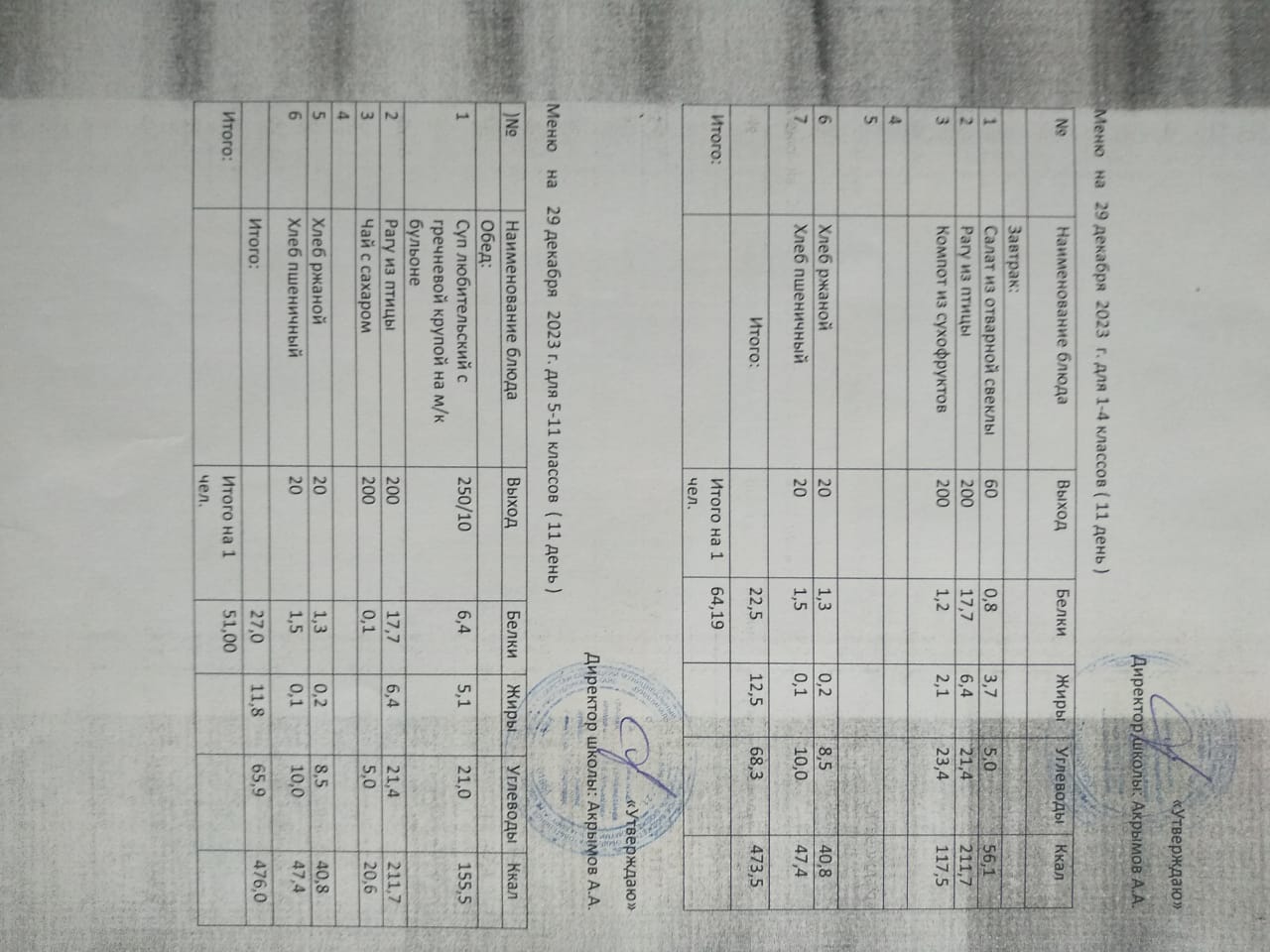 Ежедневное меню учащихся 1-4, 5-11 классов на 2023-2024 уч.год