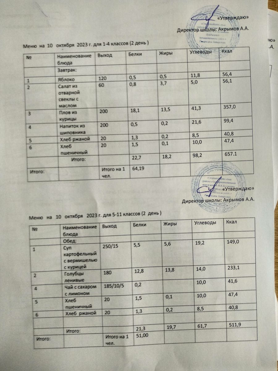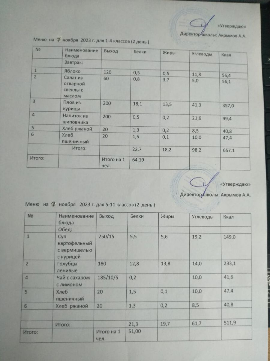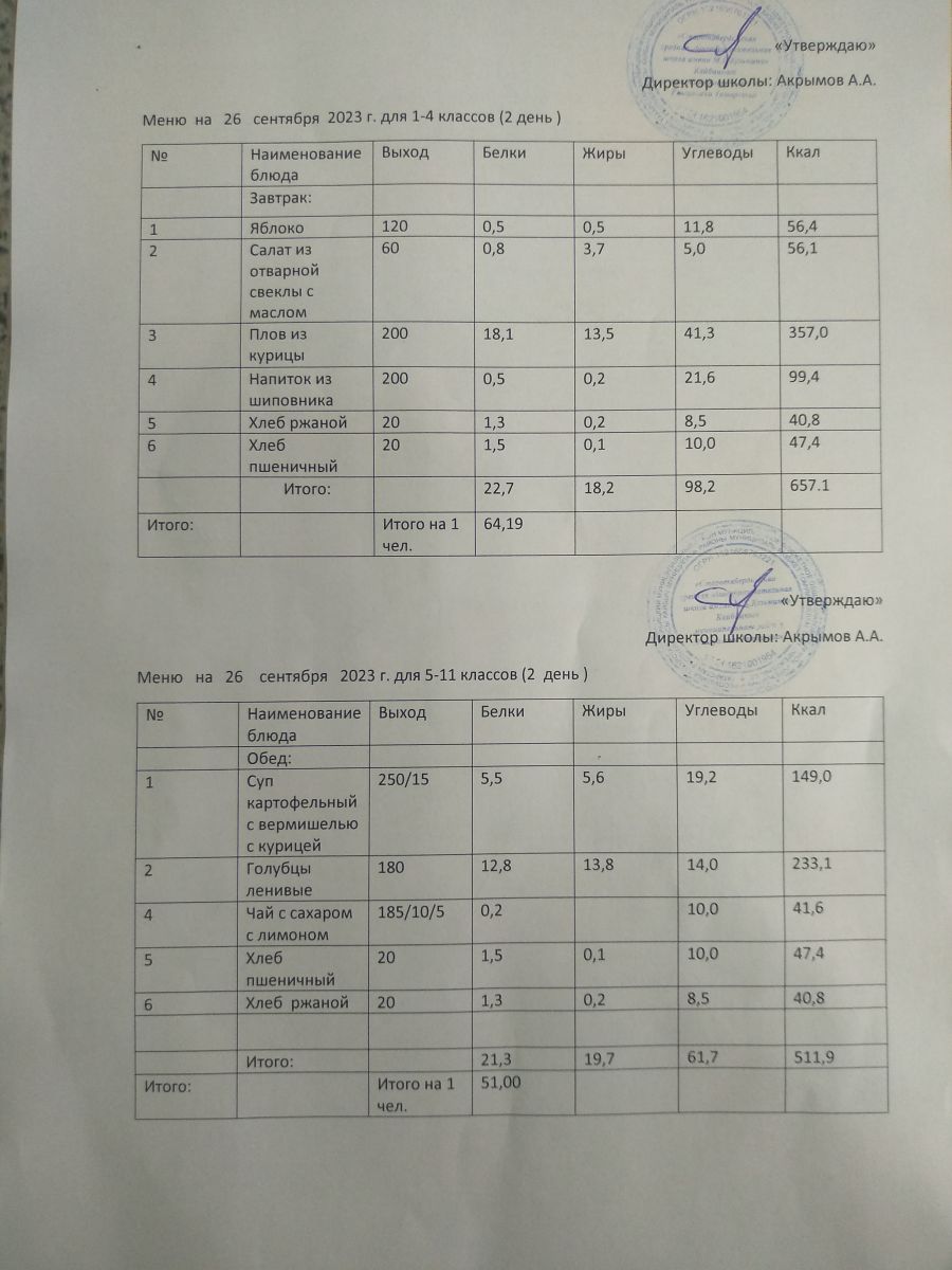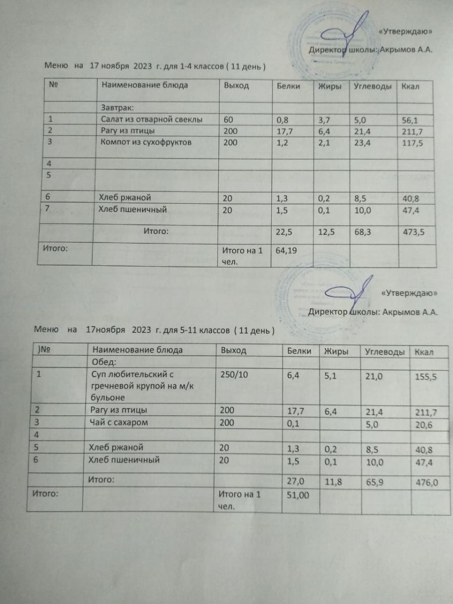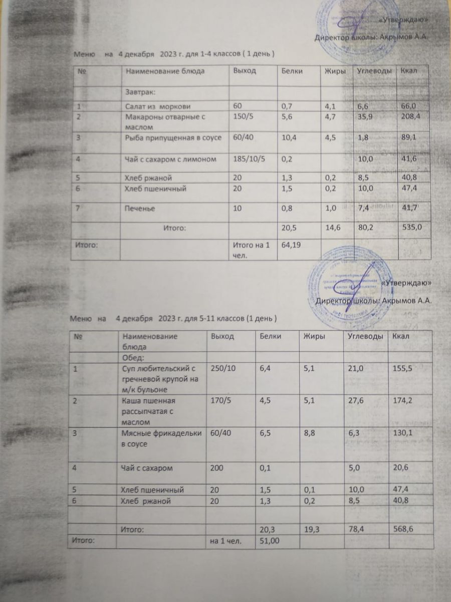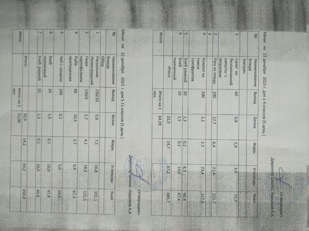 Ежедневное меню учащихся 1-4, 5-11 классов на 2023-2024 уч.год