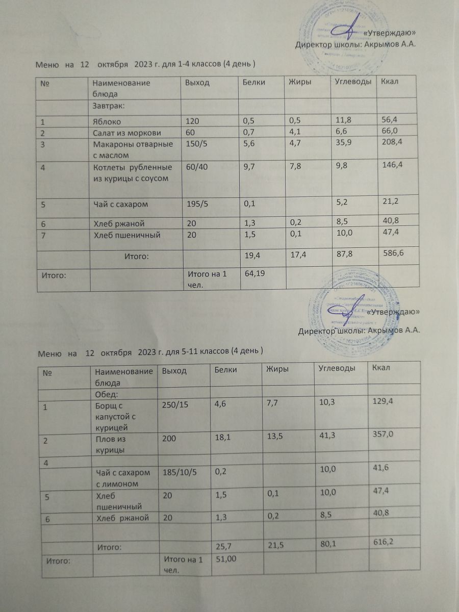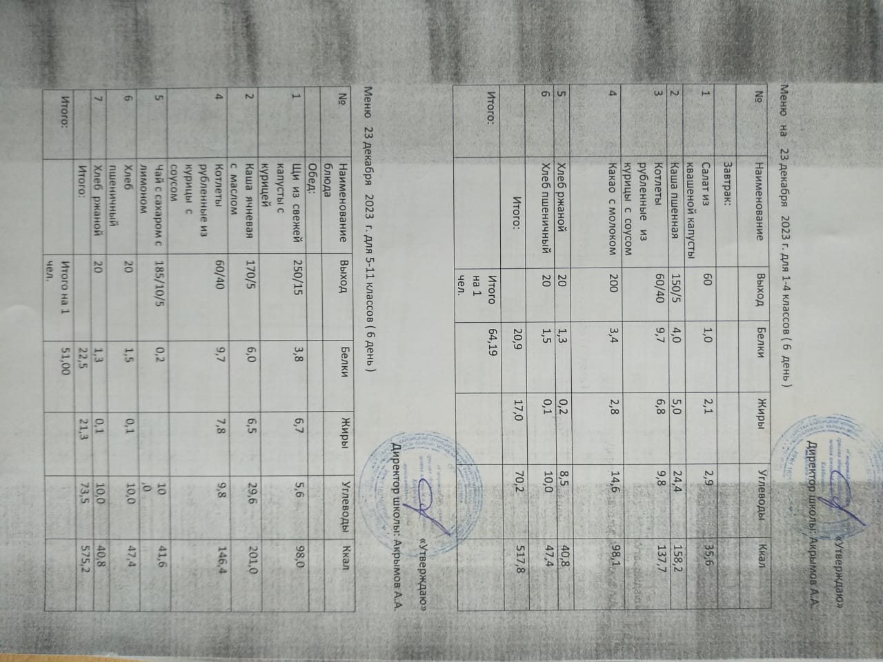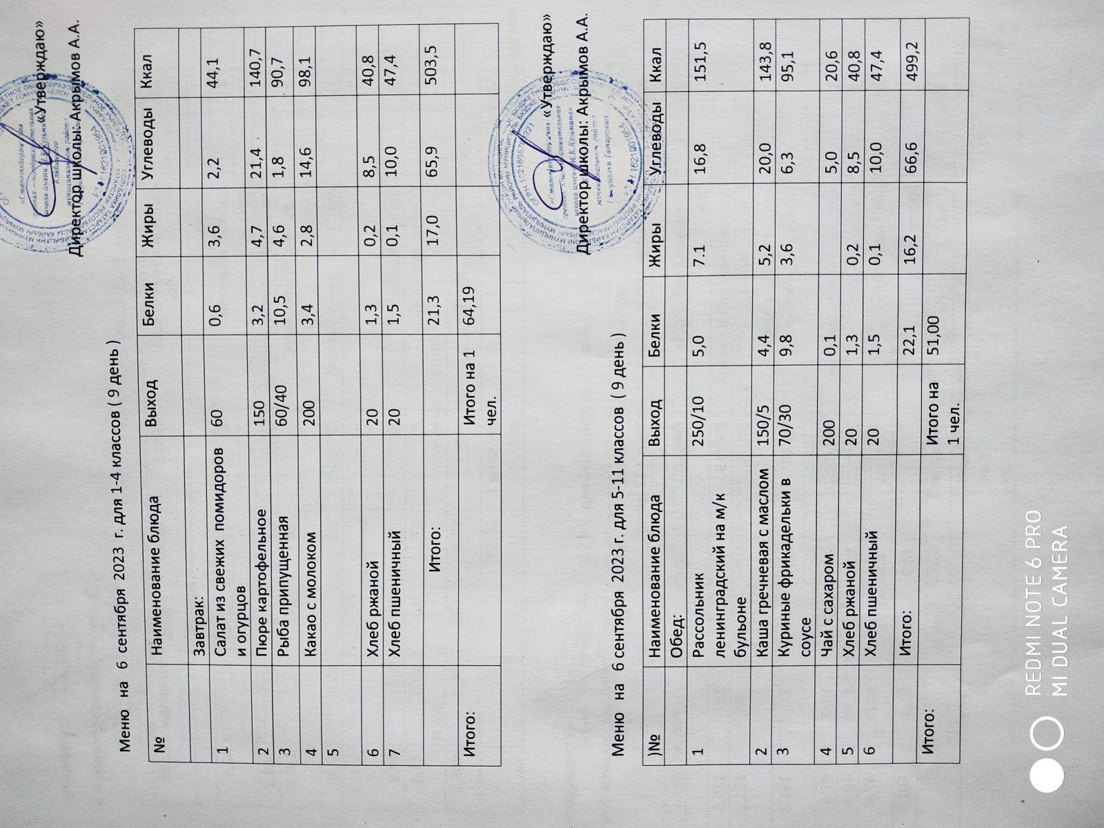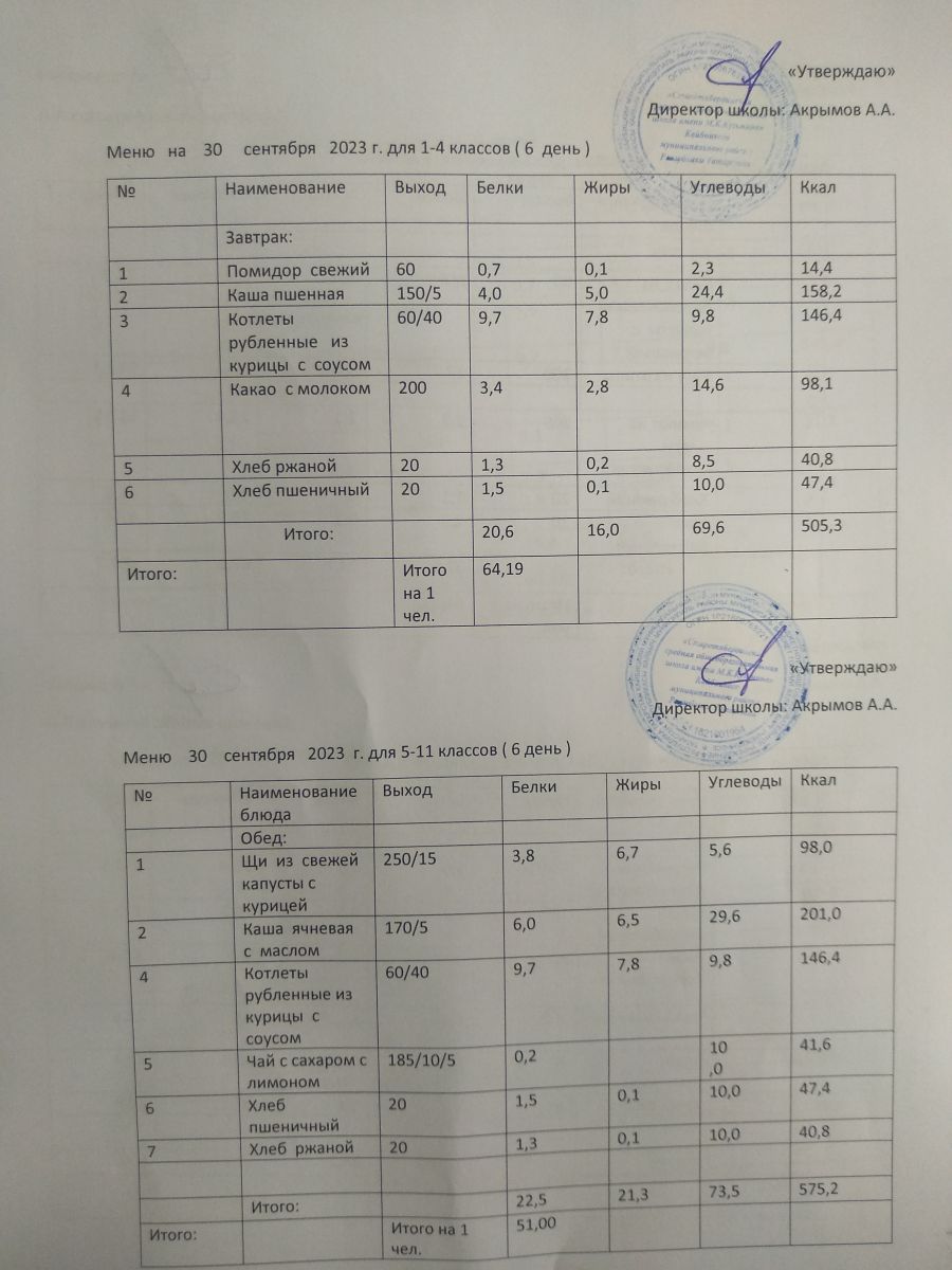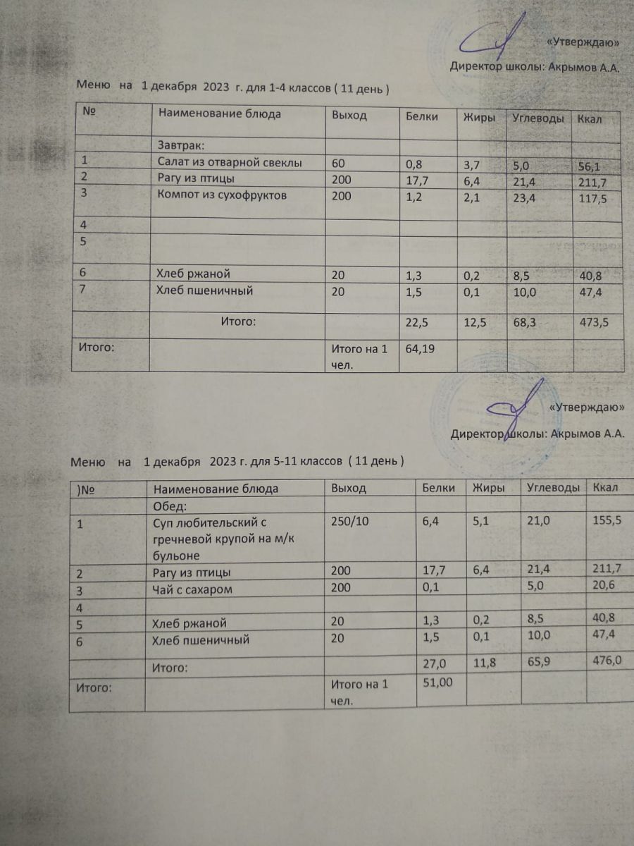 Ежедневное меню учащихся 1-4, 5-11 классов на 2023-2024 уч.год