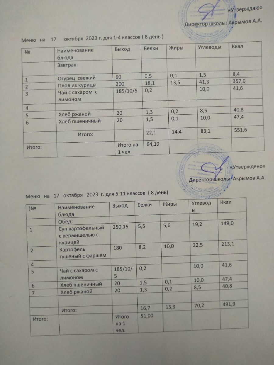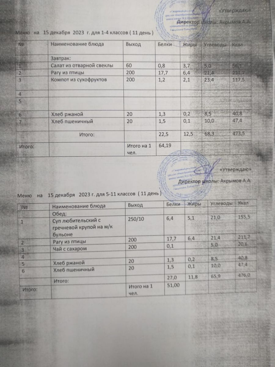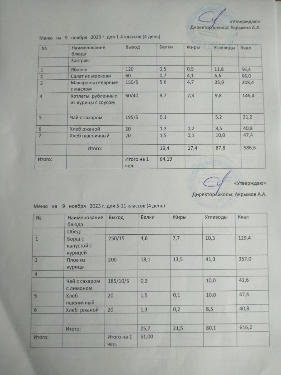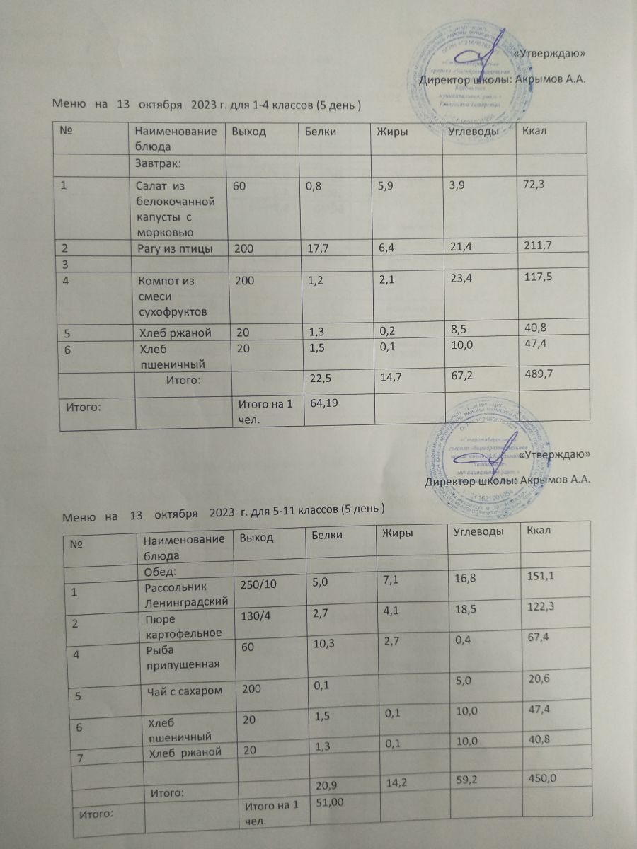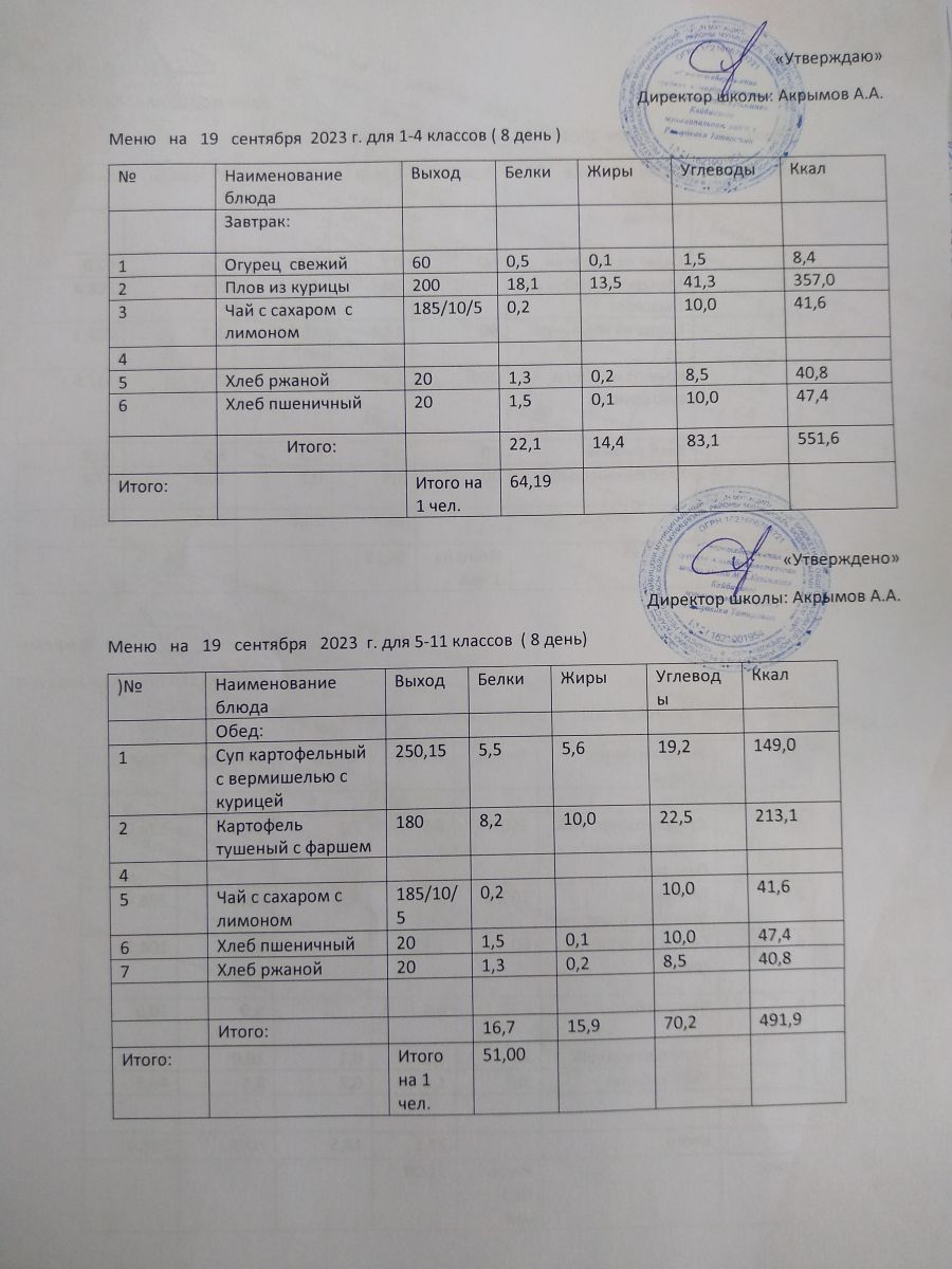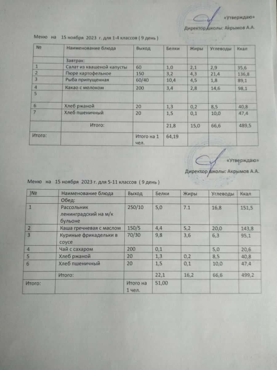 Ежедневное меню учащихся 1-4, 5-11 классов на 2023-2024 уч.год