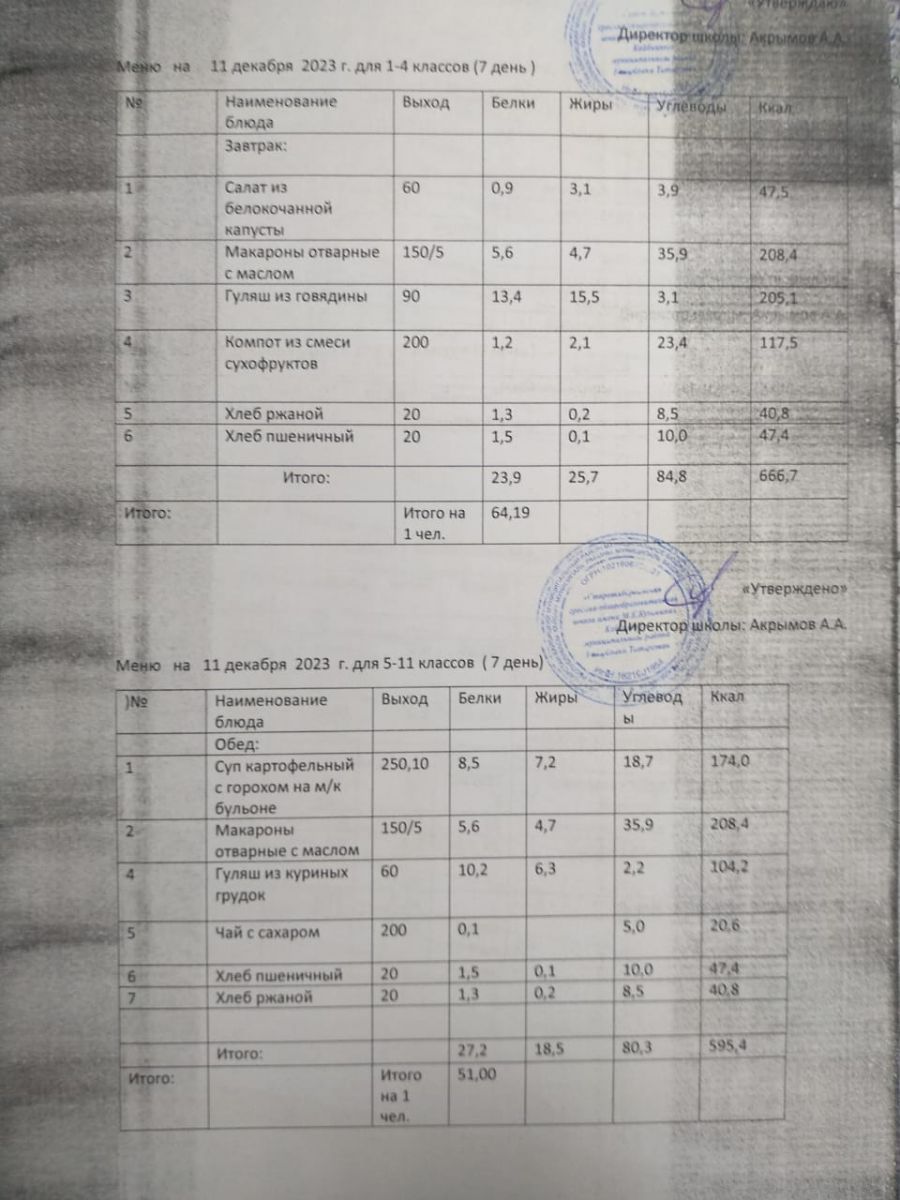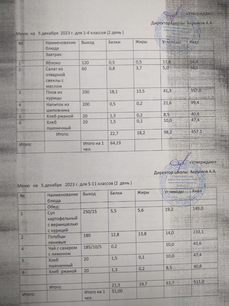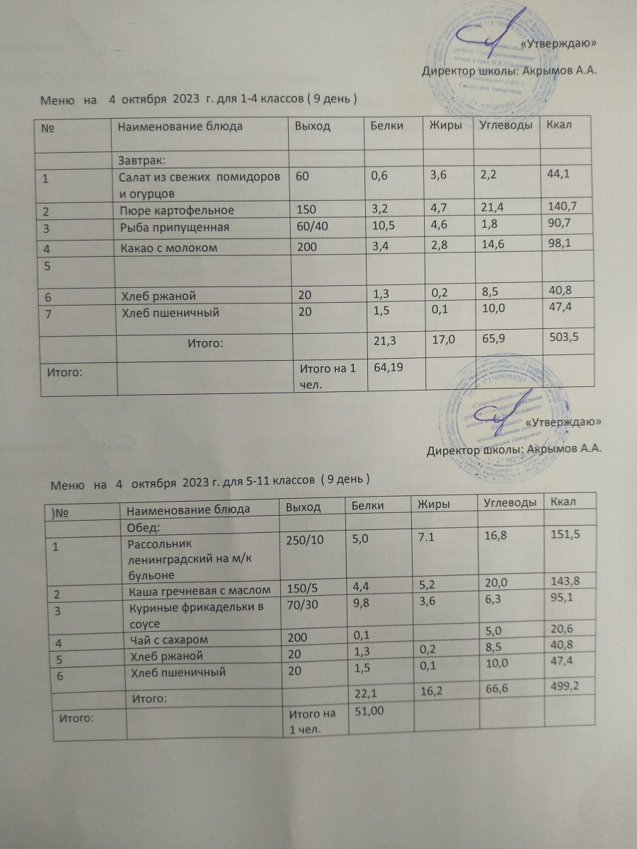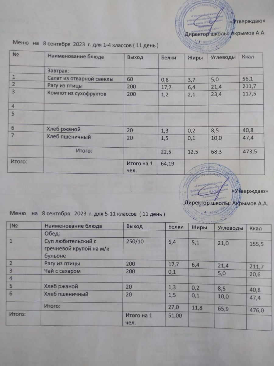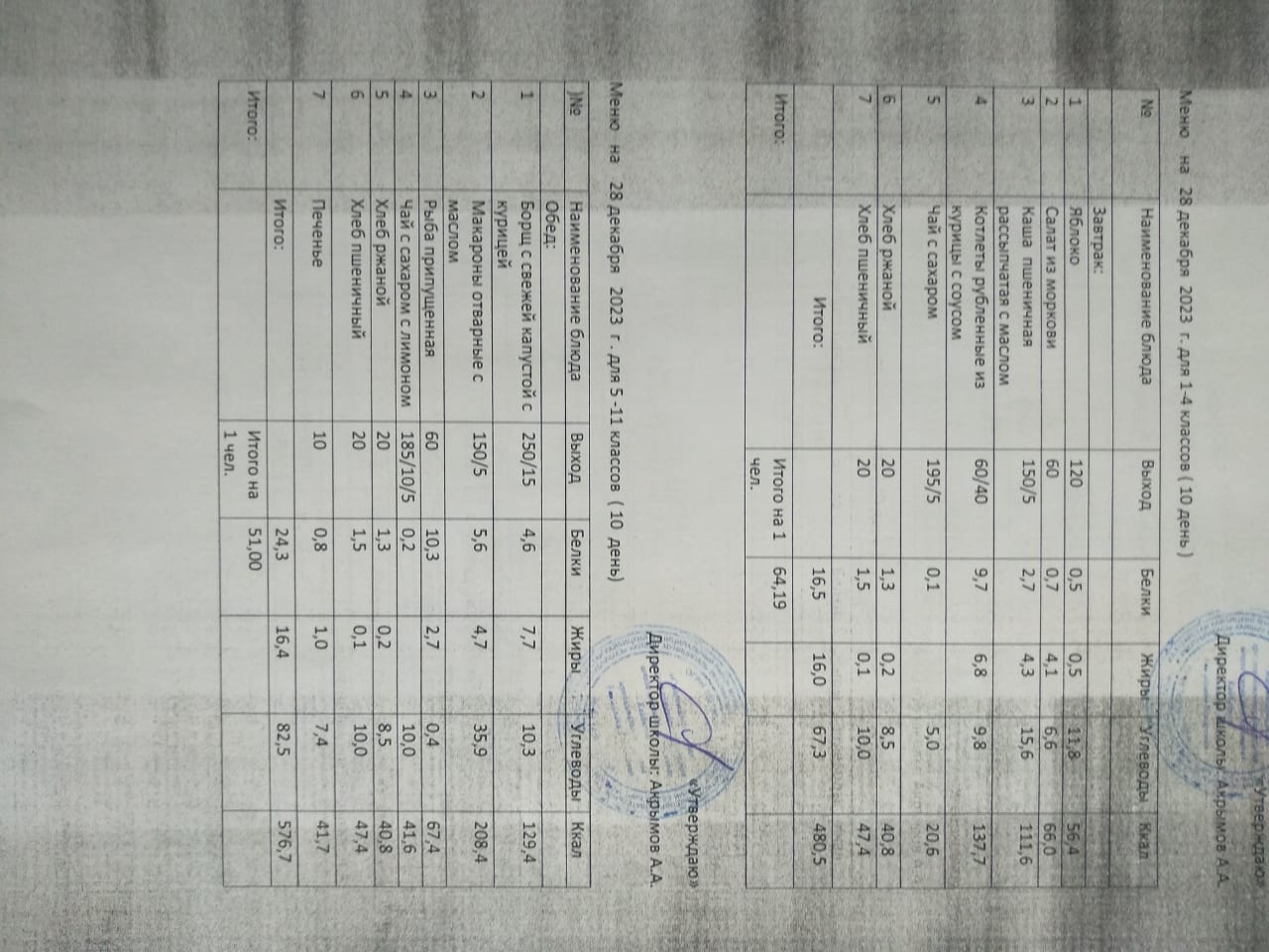 Ежедневное меню учащихся 1-4, 5-11 классов на 2023-2024 уч.год