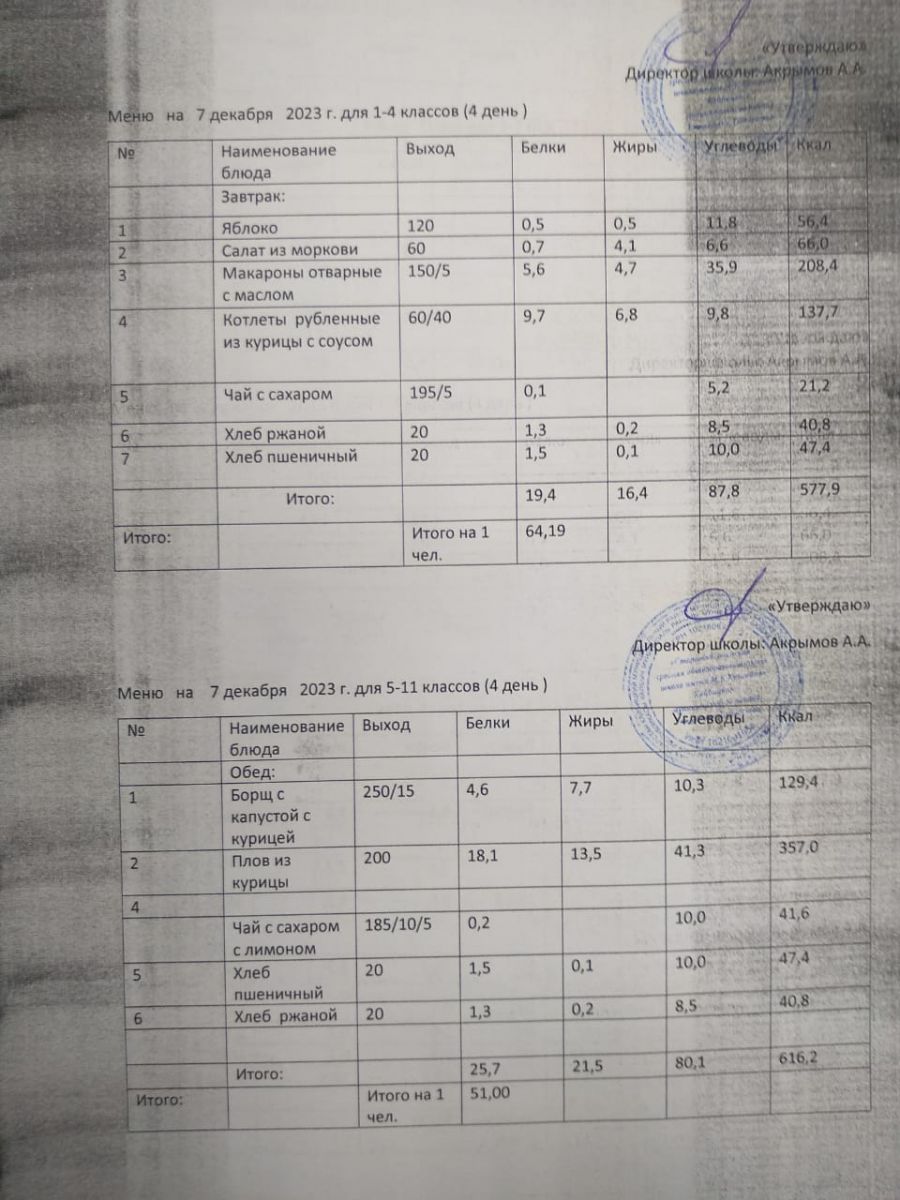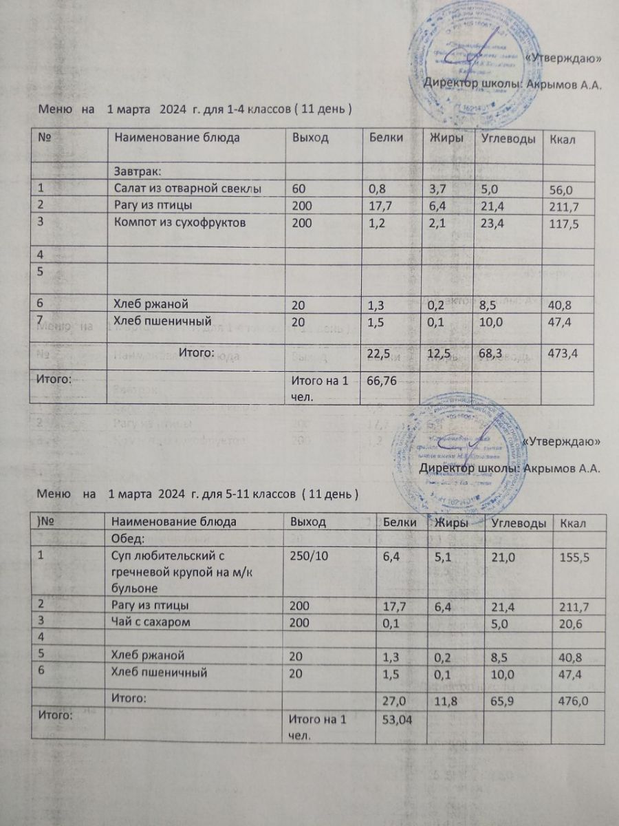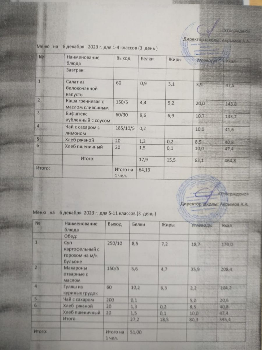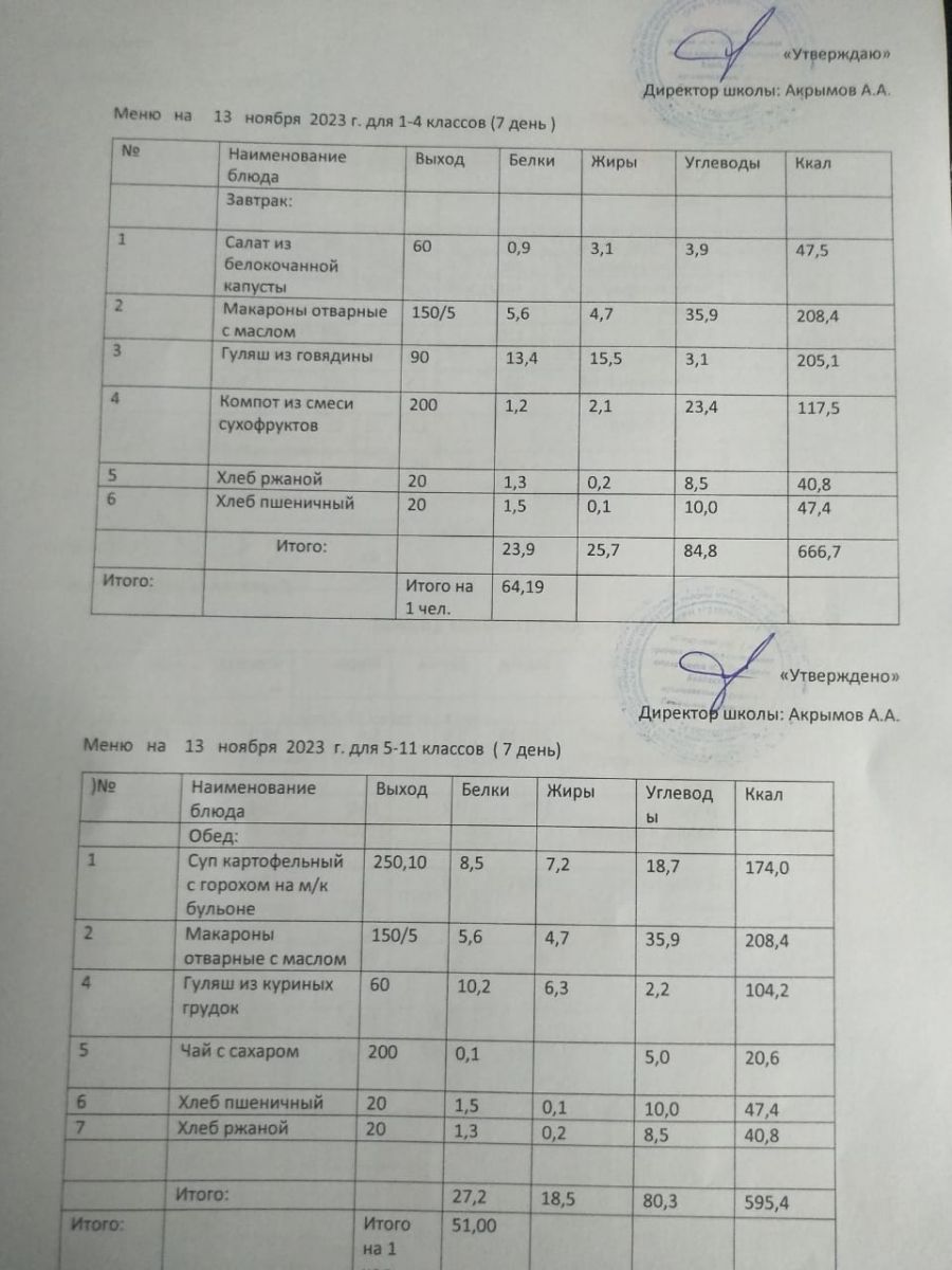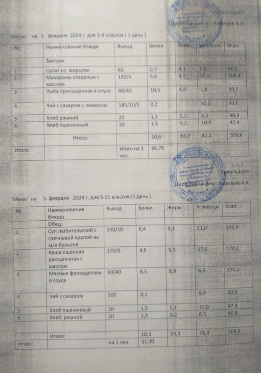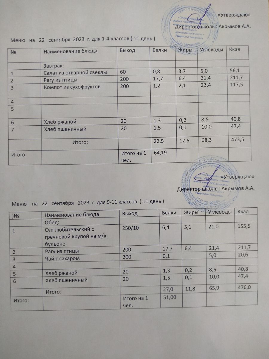 Ежедневное меню учащихся 1-4, 5-11 классов на 2023-2024 уч.год