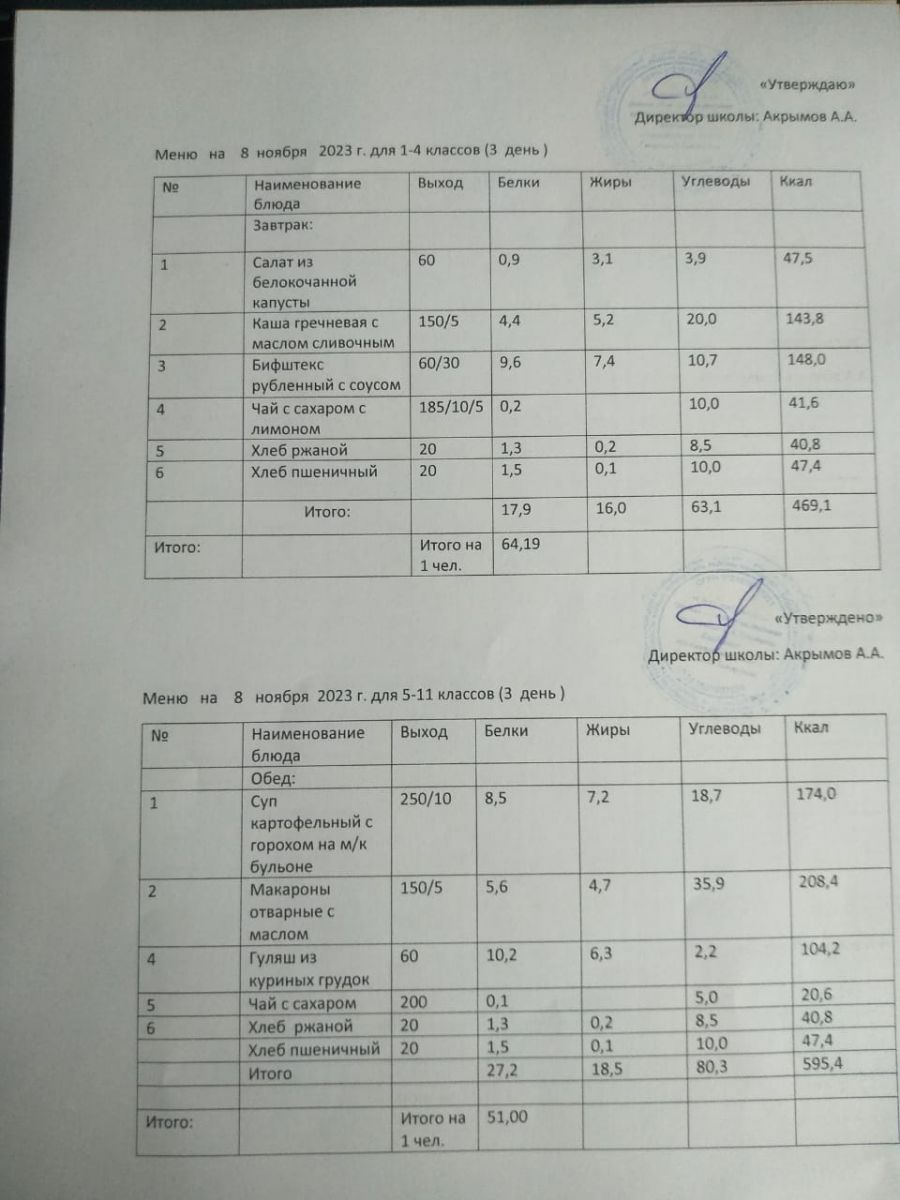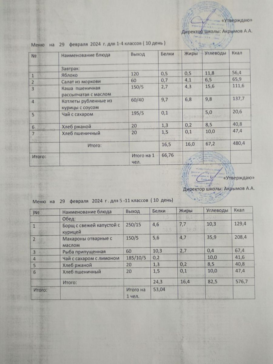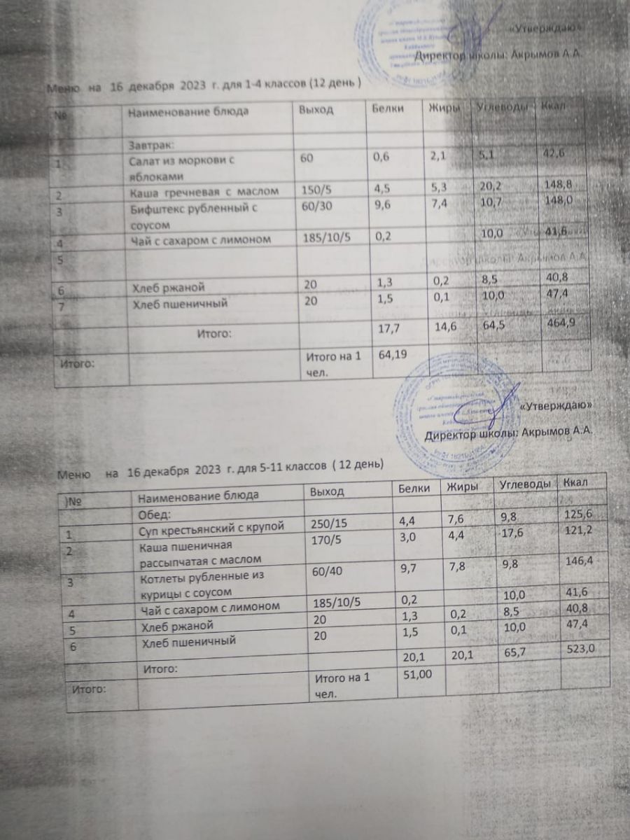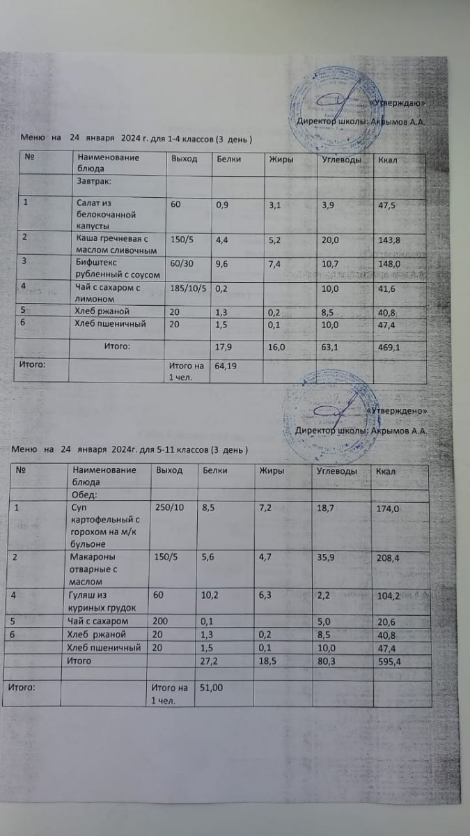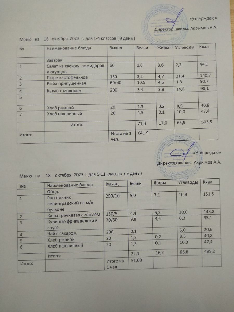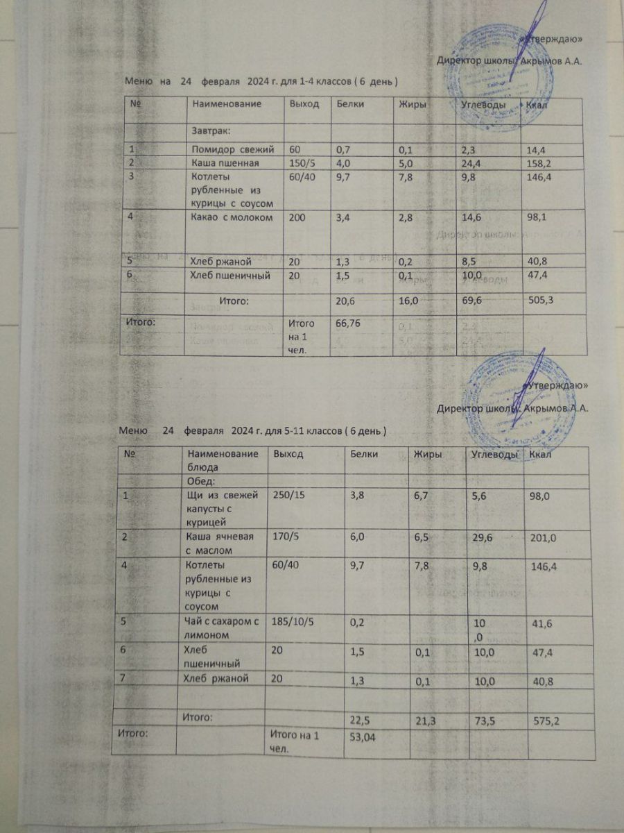 Ежедневное меню учащихся 1-4, 5-11 классов на 2023-2024 уч.год
