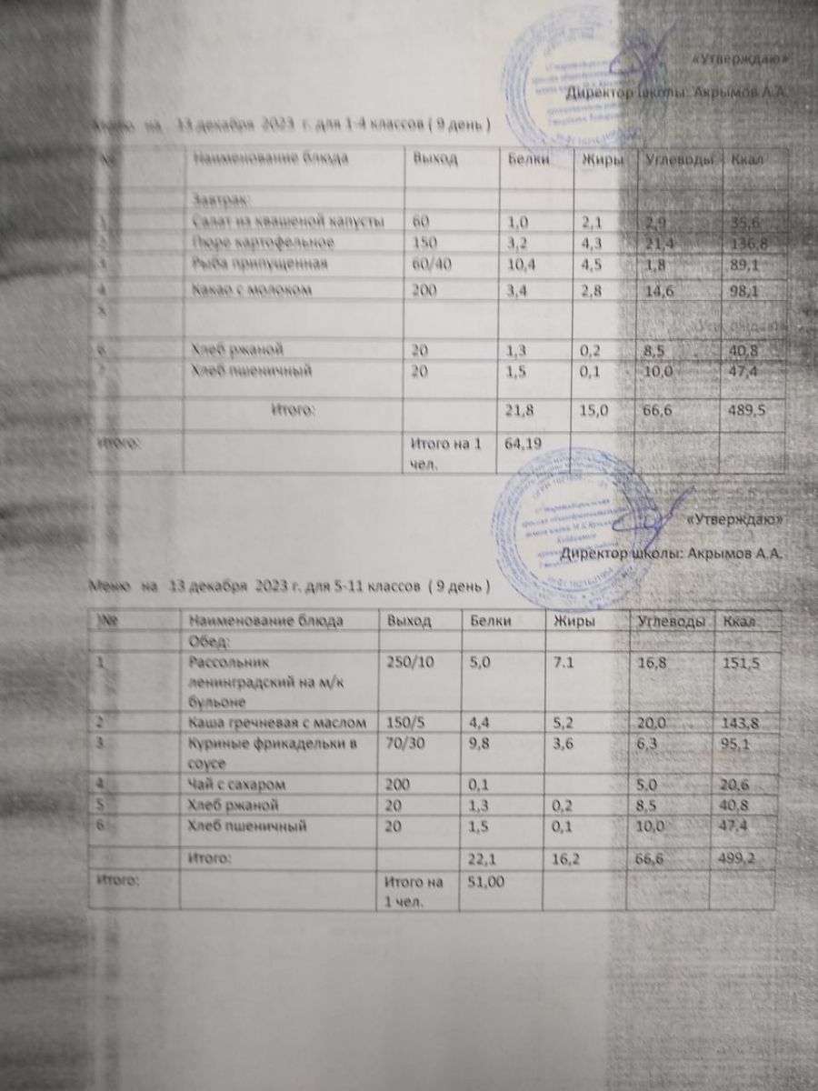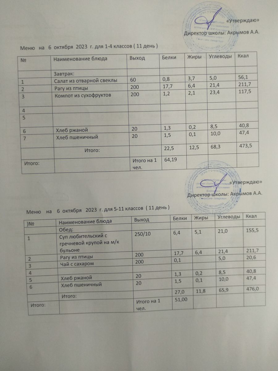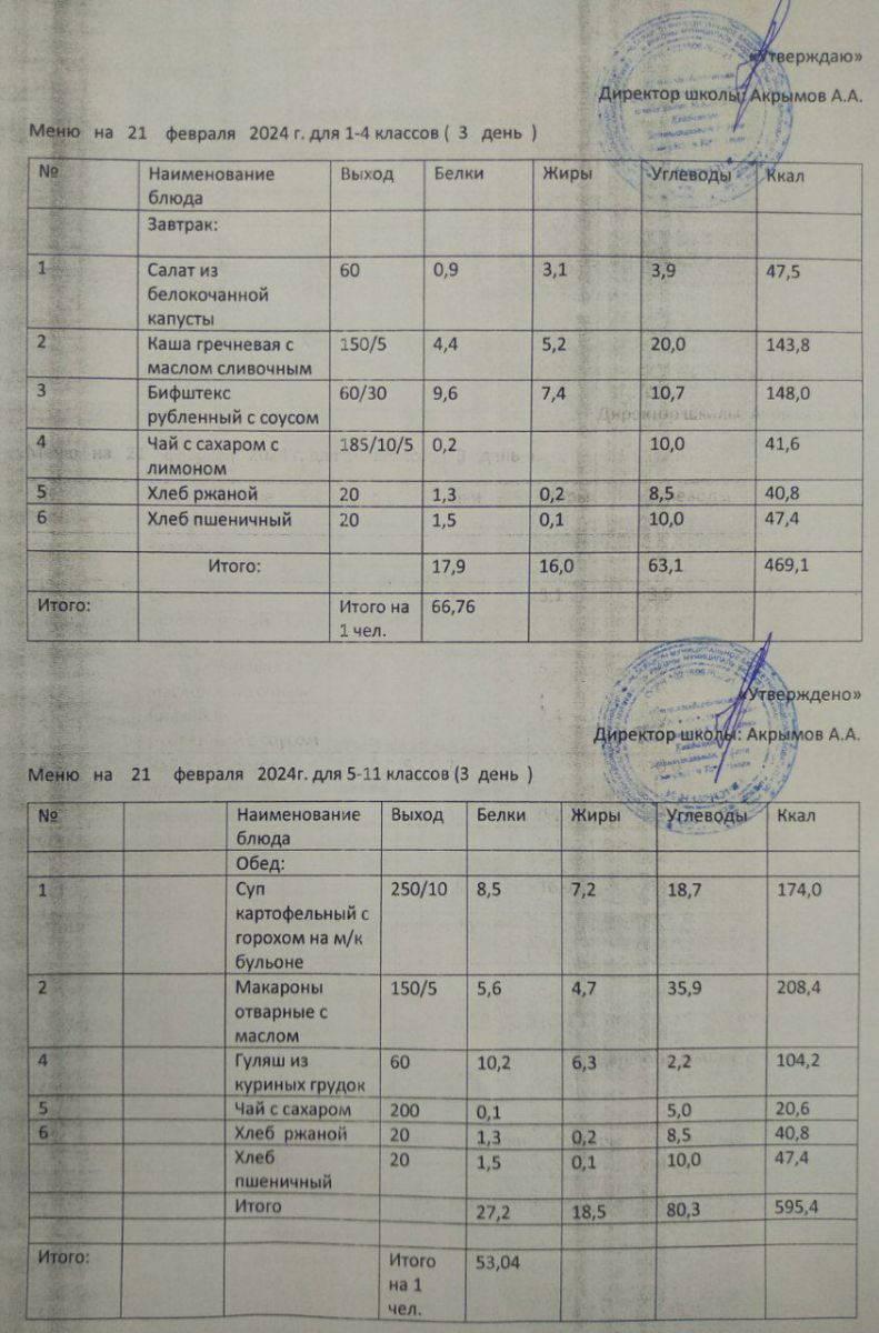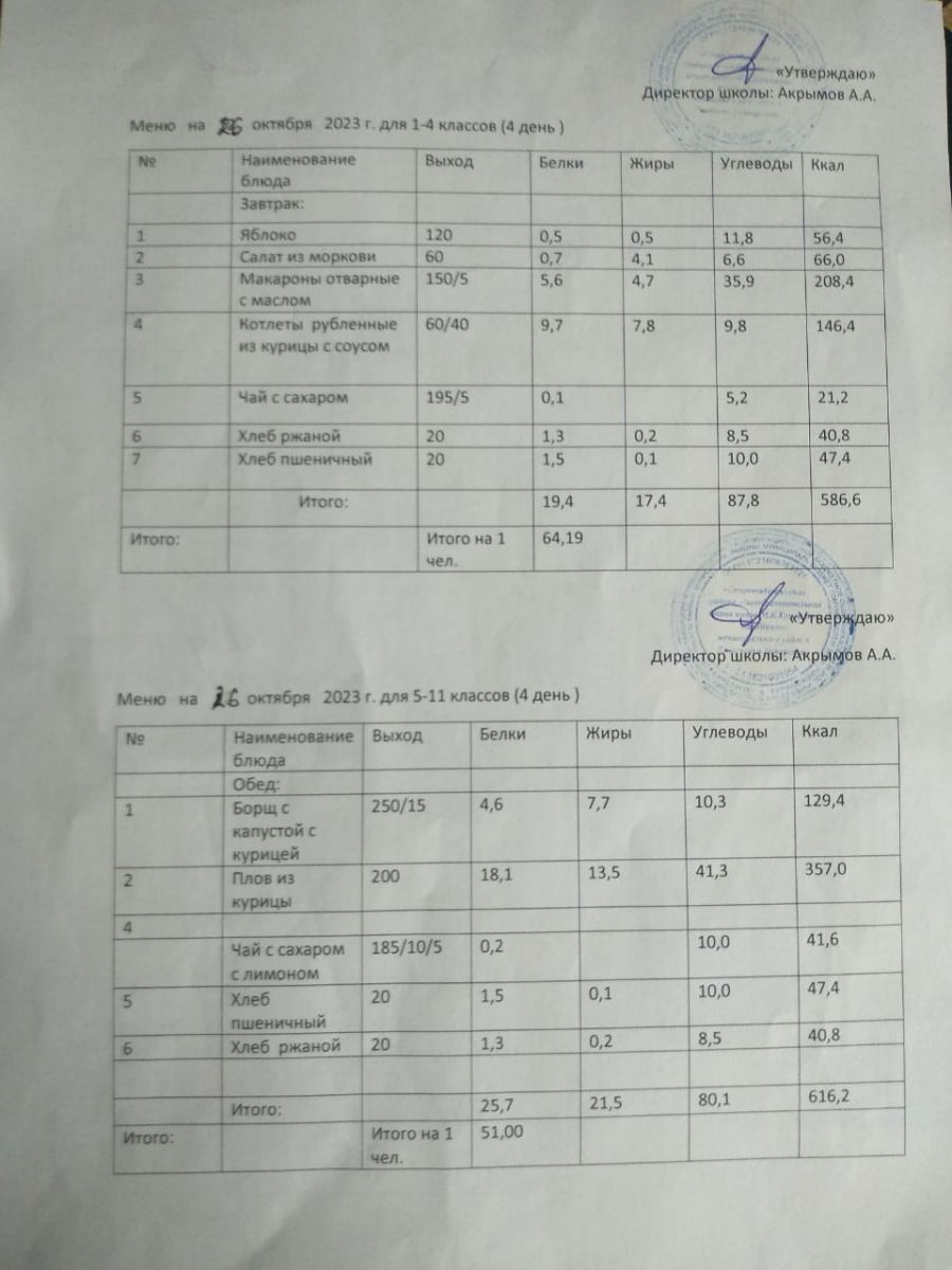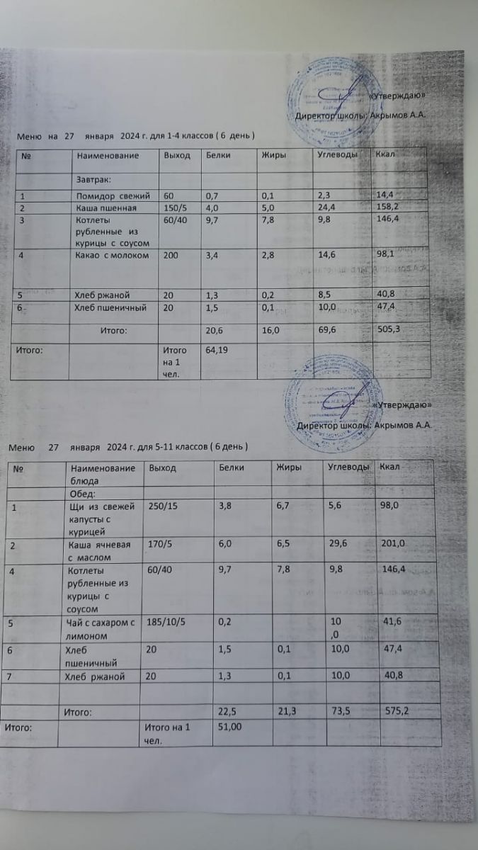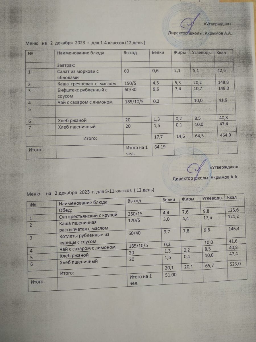 Ежедневное меню учащихся 1-4, 5-11 классов на 2023-2024 уч.год