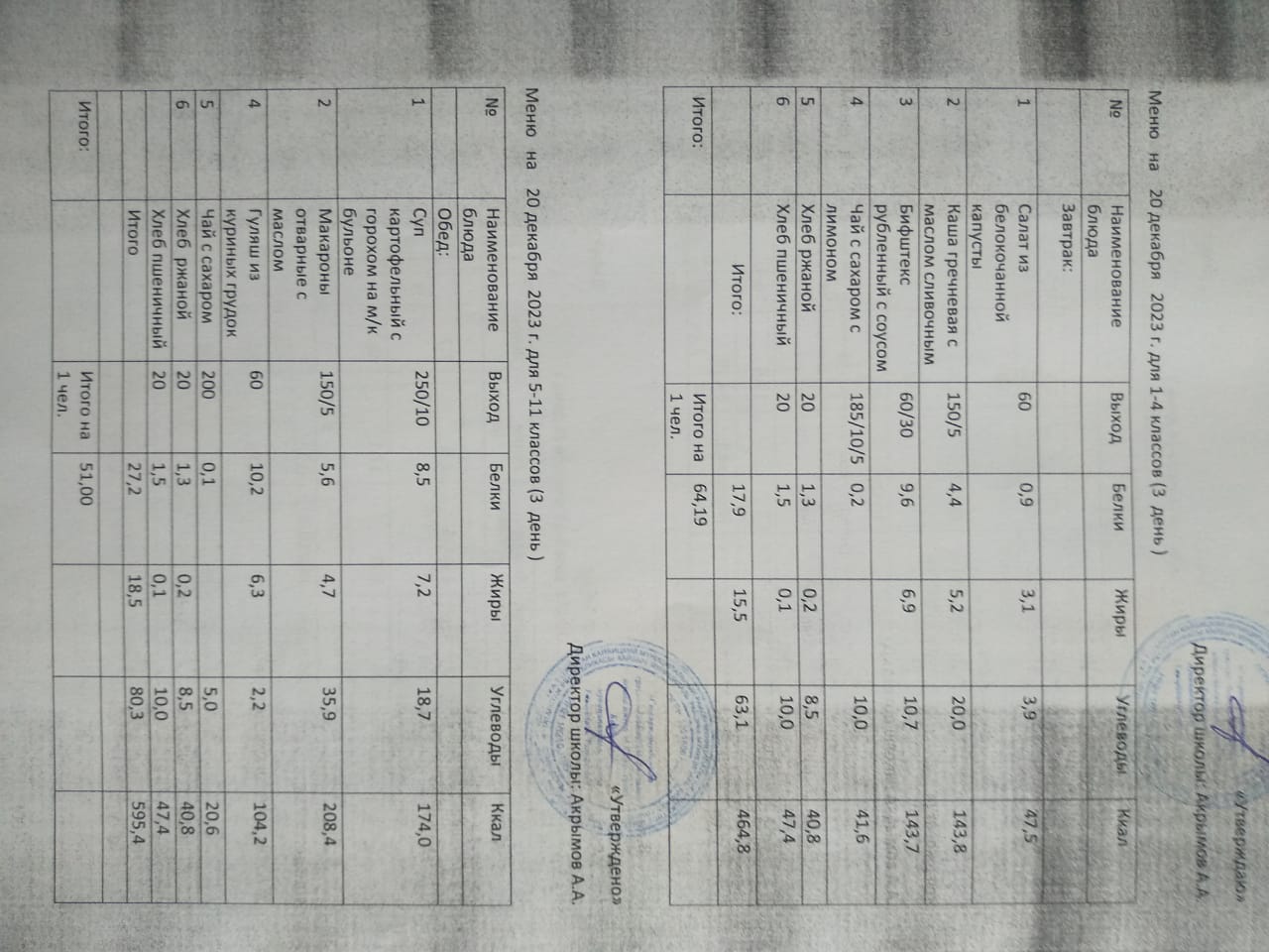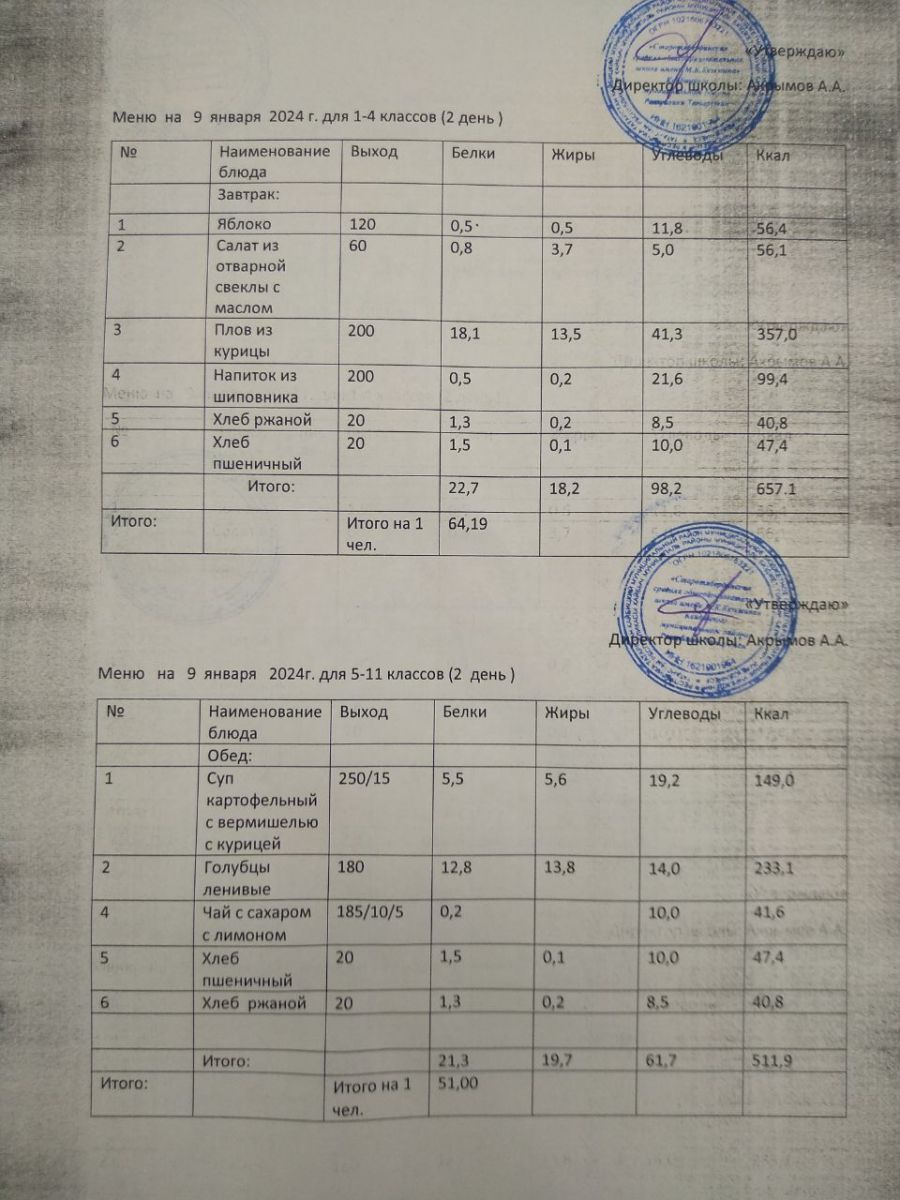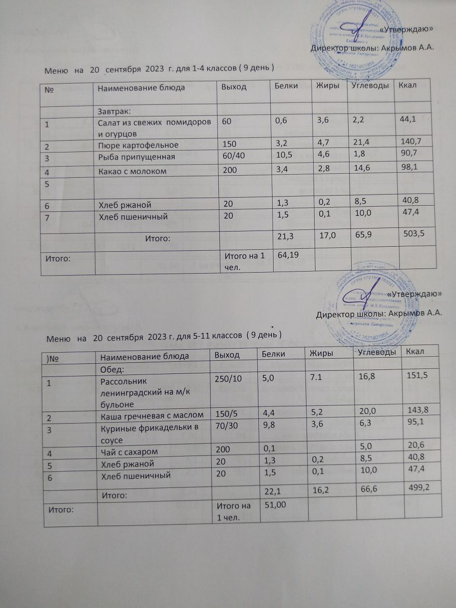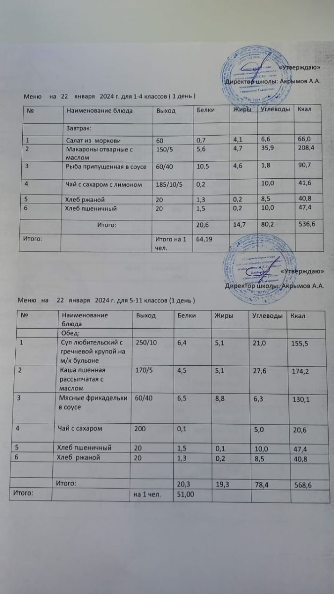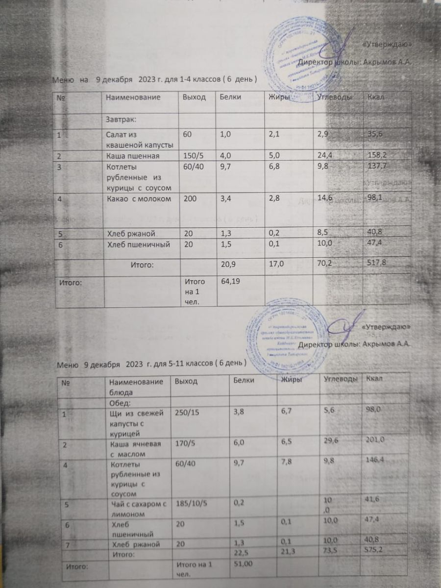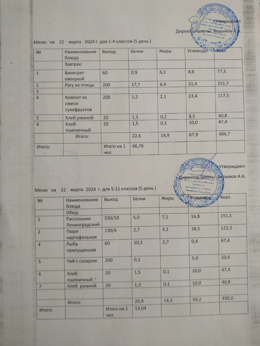 Ежедневное меню учащихся 1-4, 5-11 классов на 2023-2024 уч.год