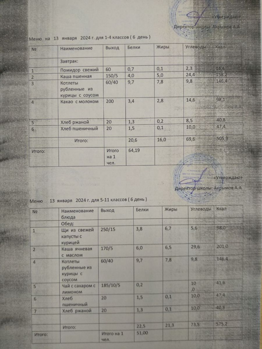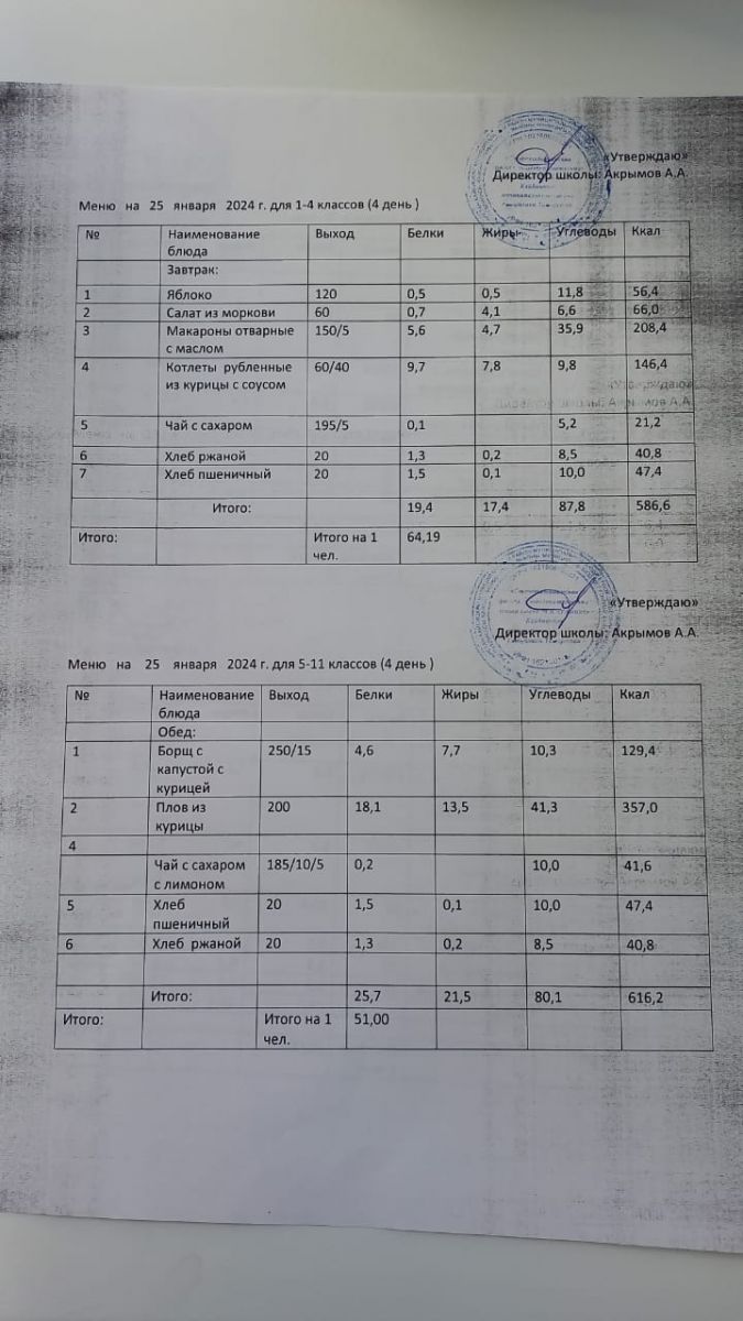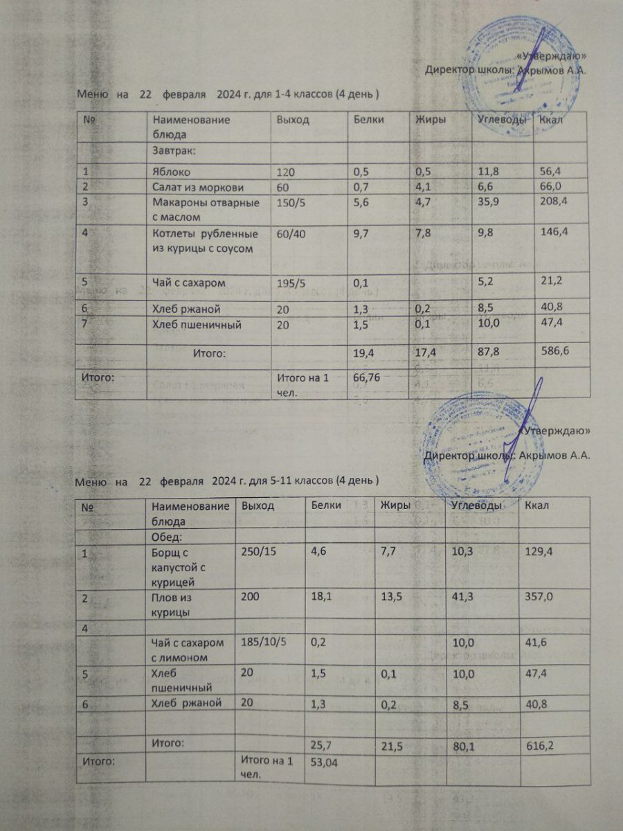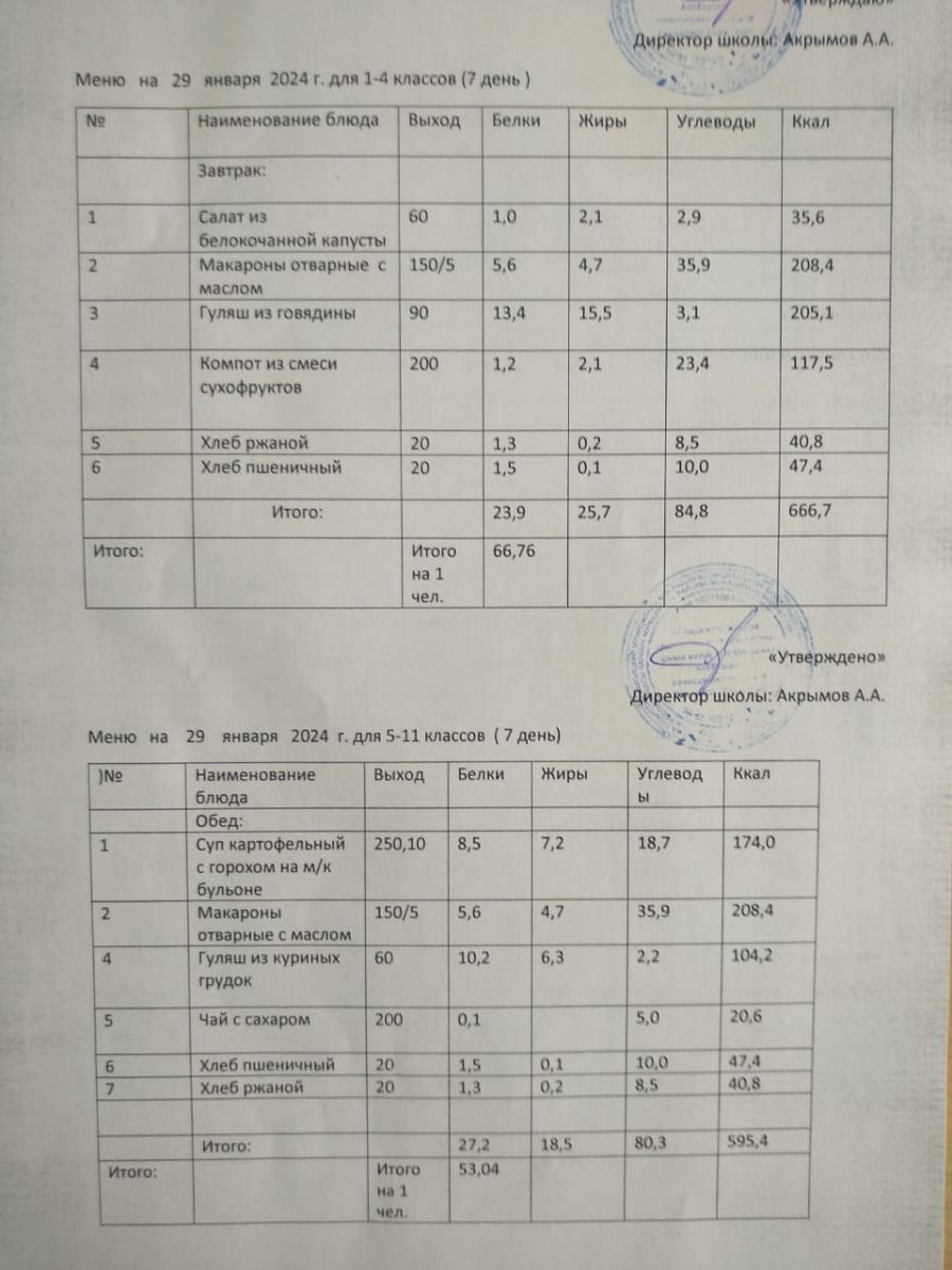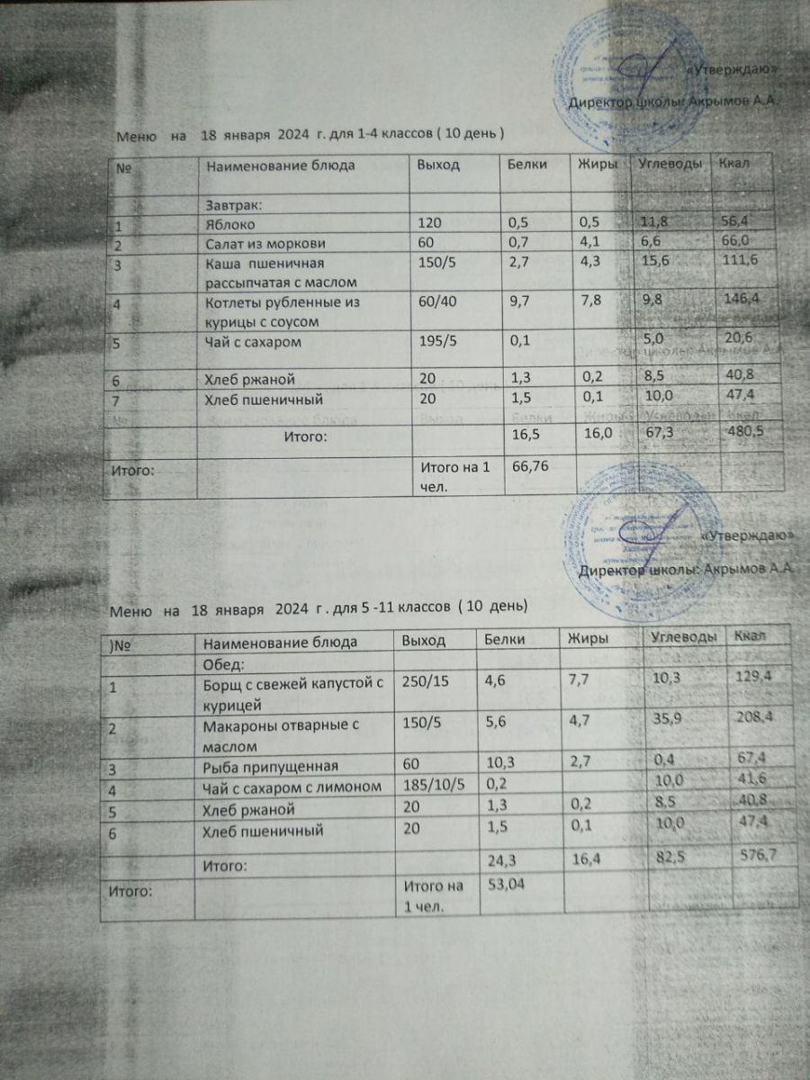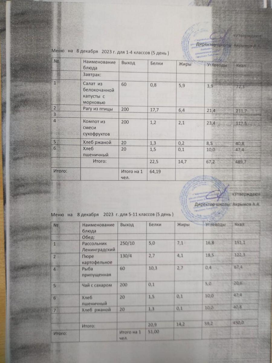 Ежедневное меню учащихся 1-4, 5-11 классов на 2023-2024 уч.год