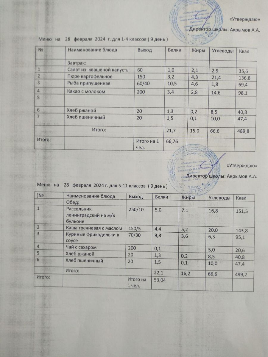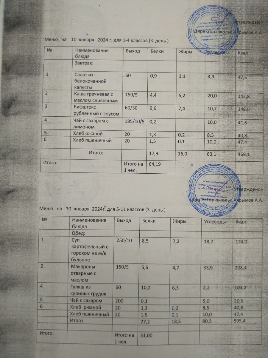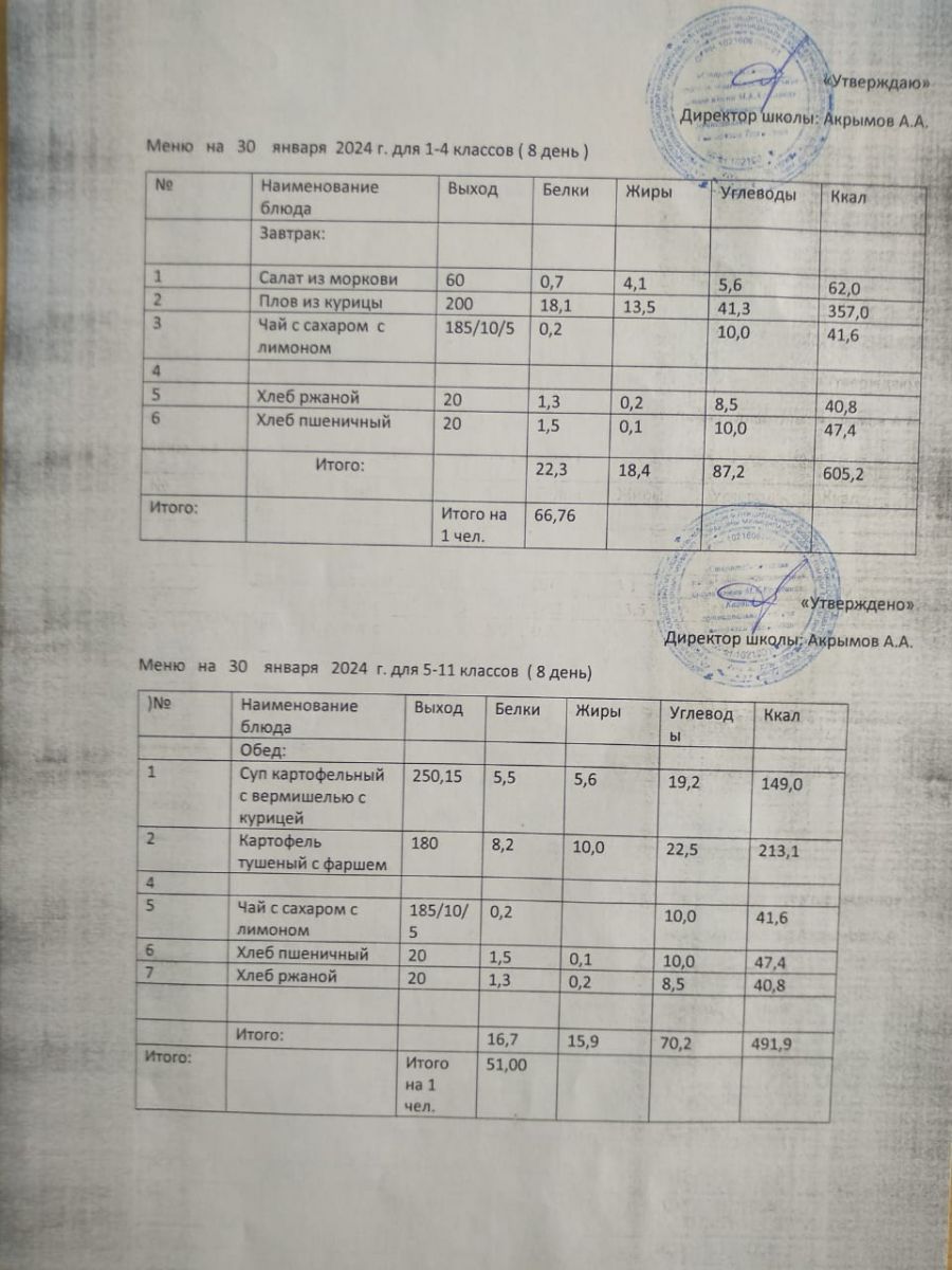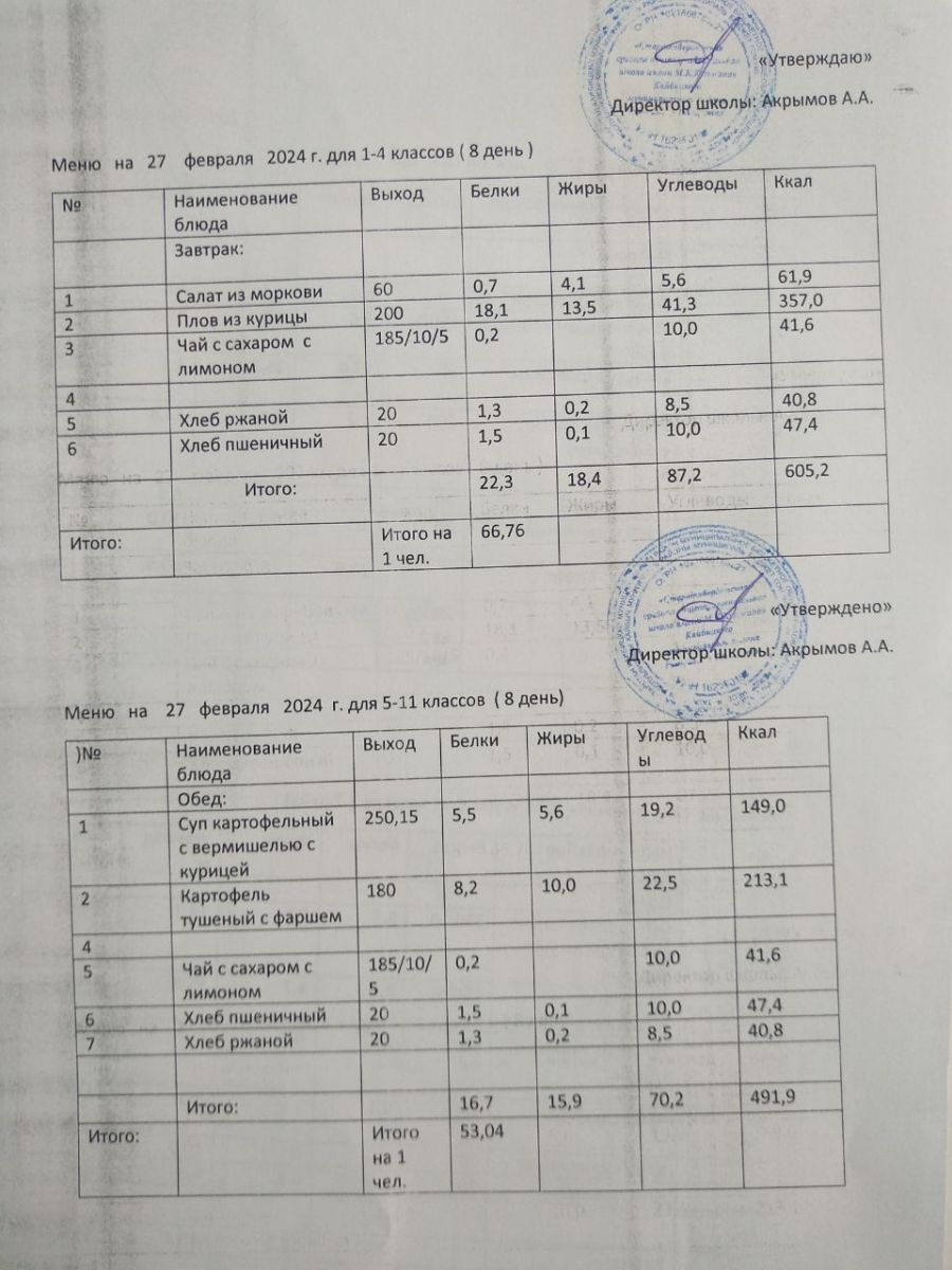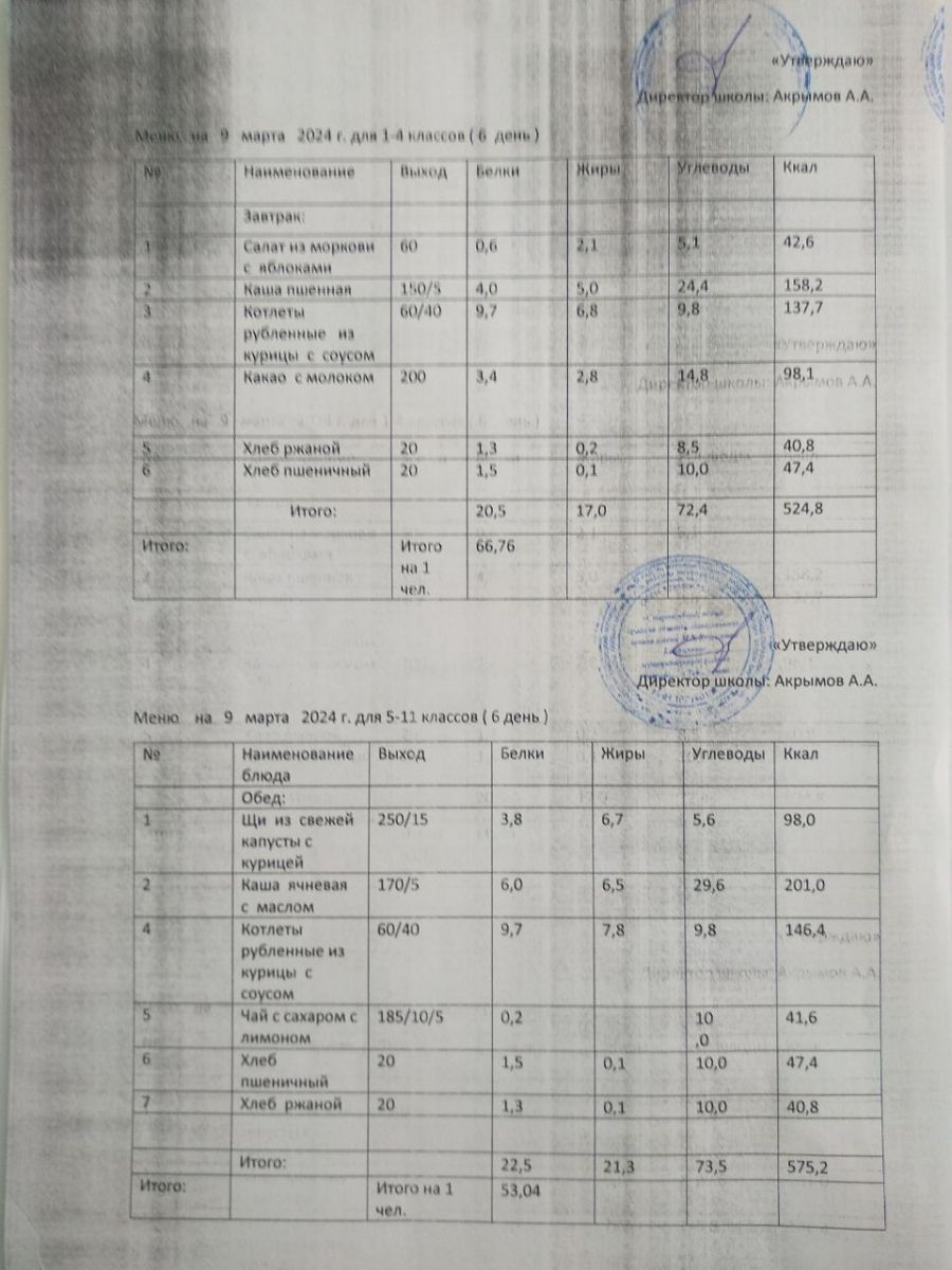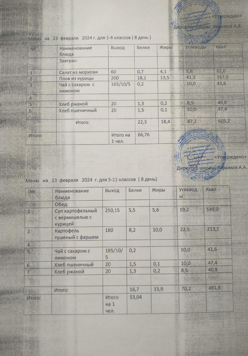 Ежедневное меню учащихся 1-4, 5-11 классов на 2023-2024 уч.год