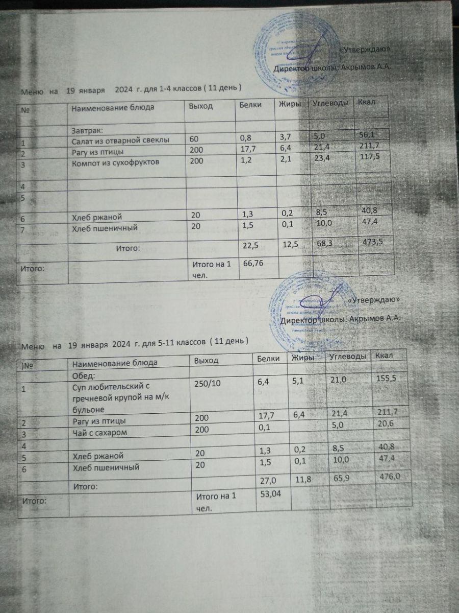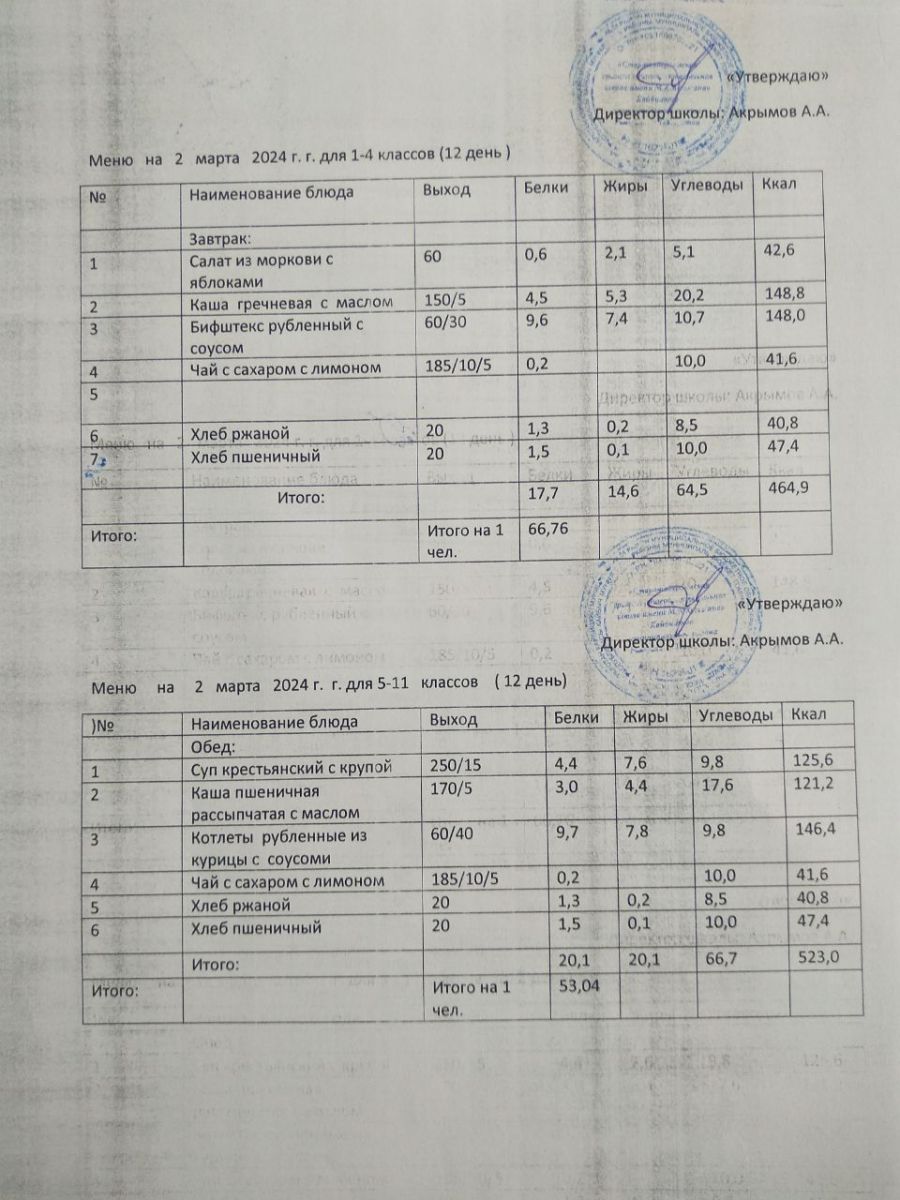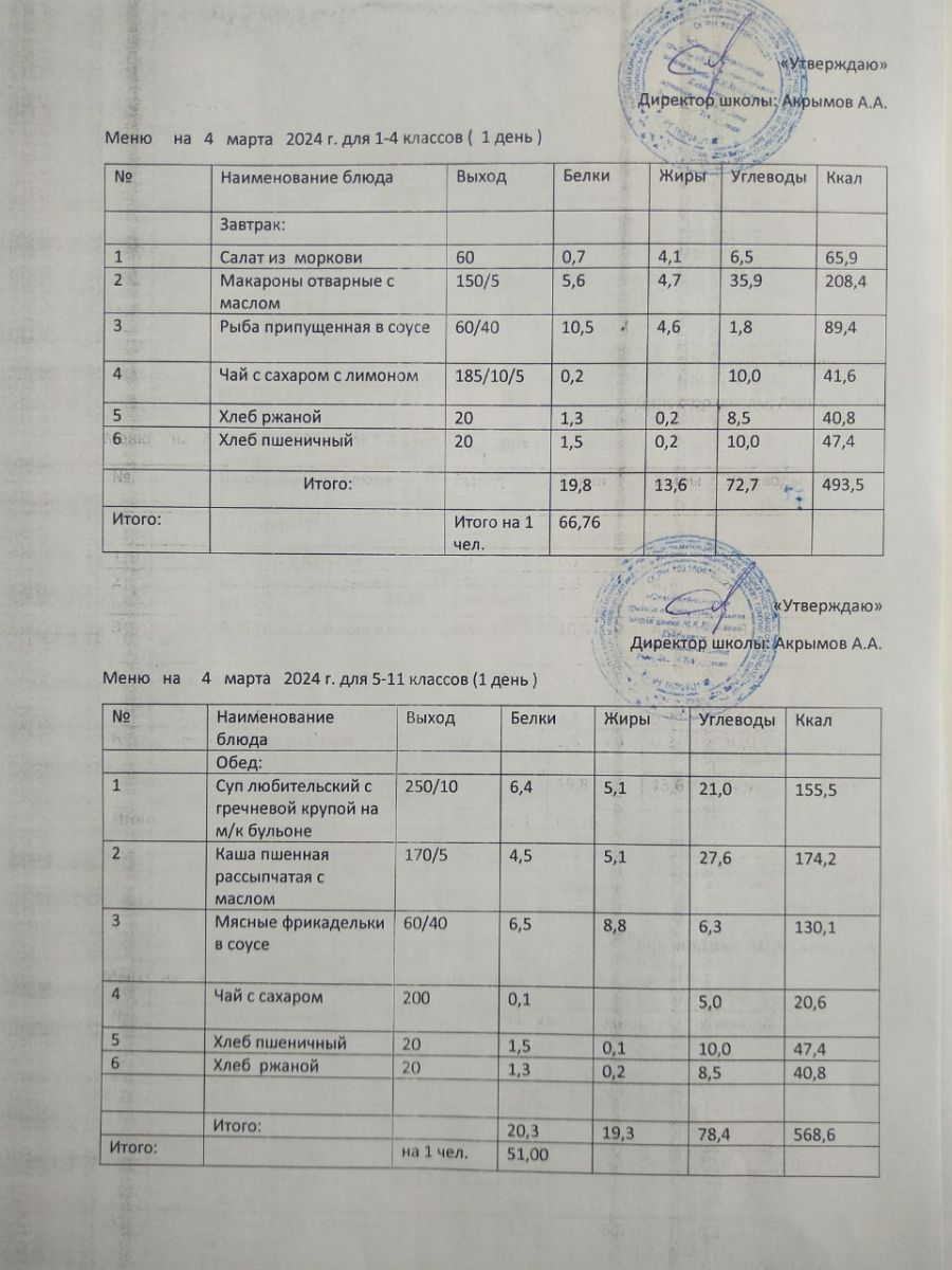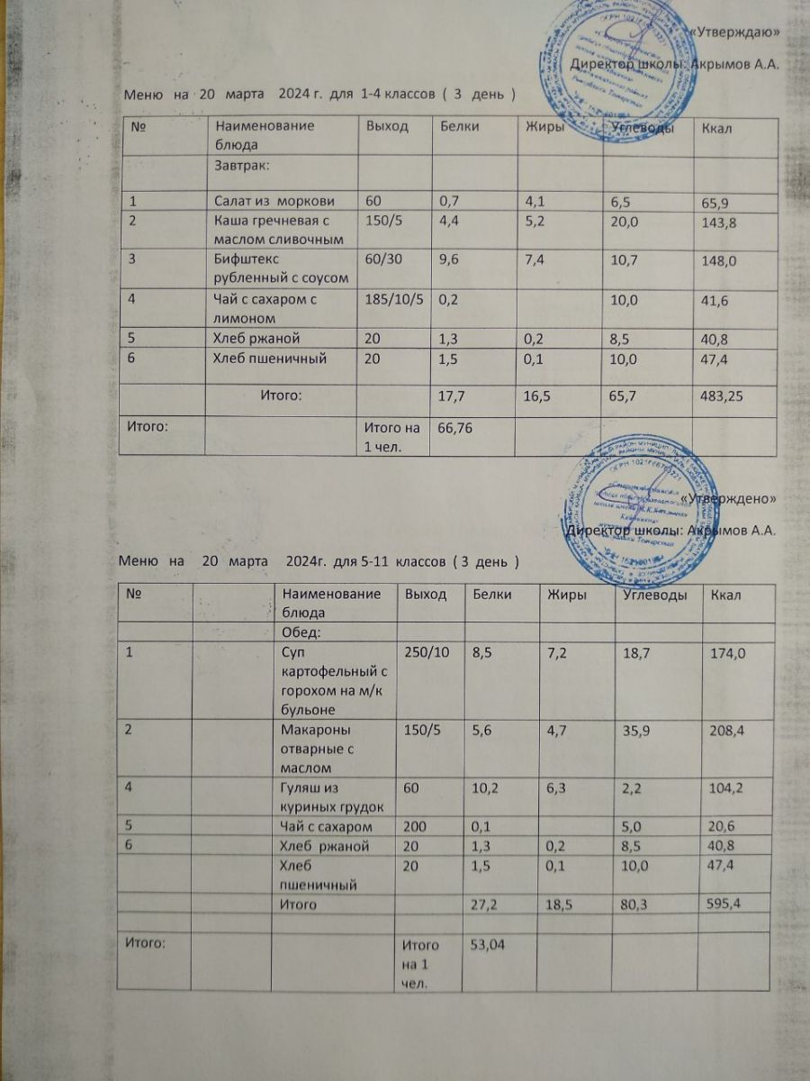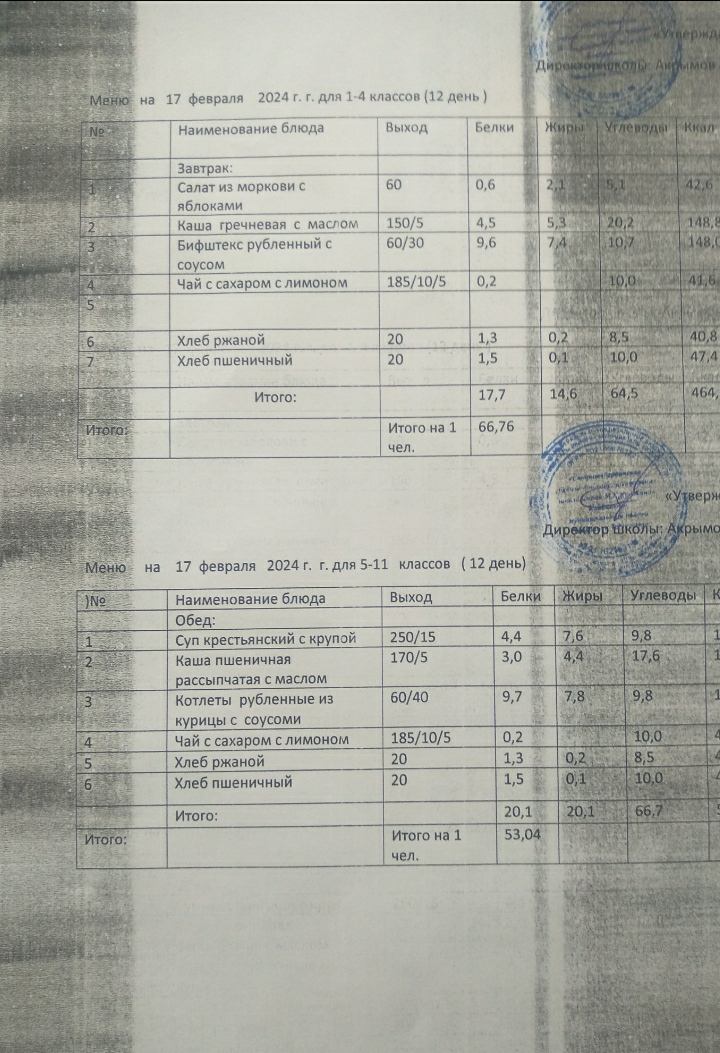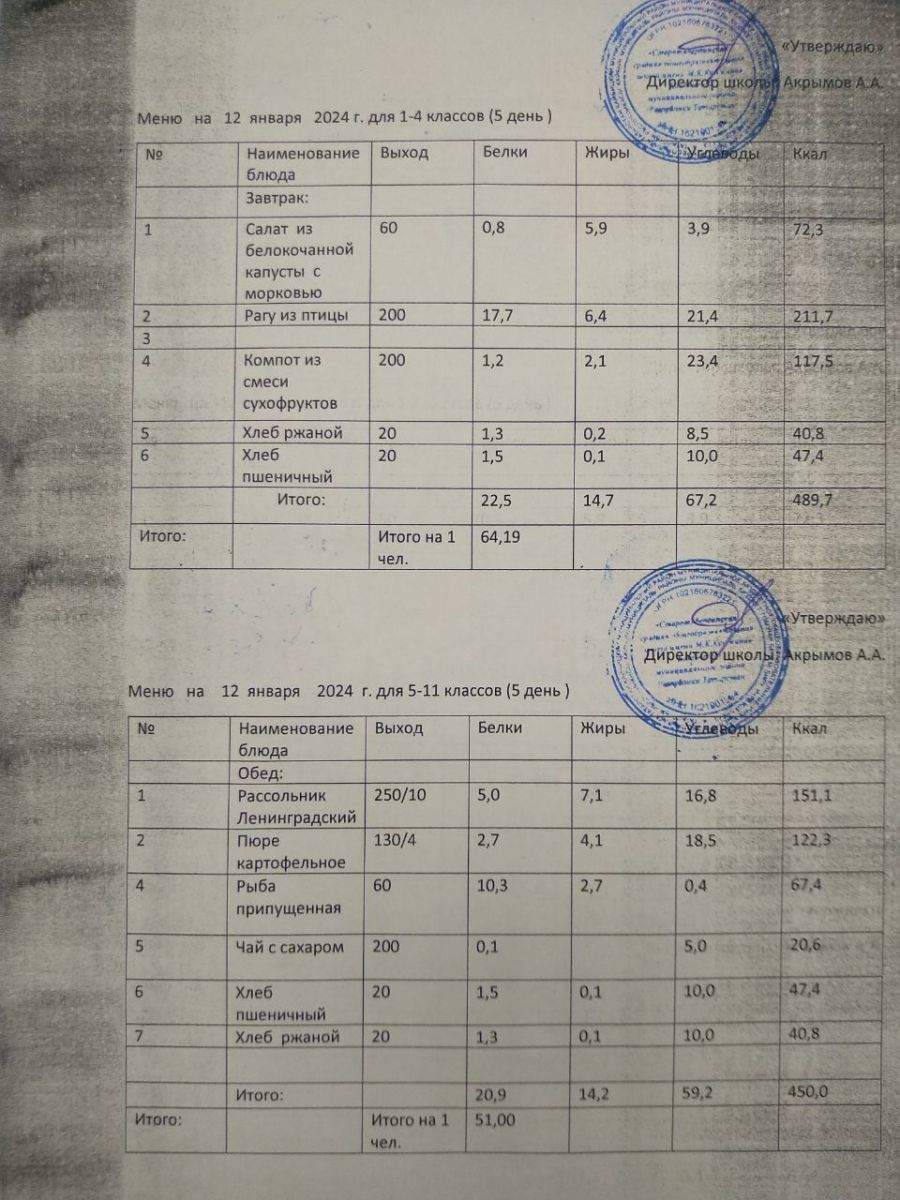 Ежедневное меню учащихся 1-4, 5-11 классов на 2023-2024 уч.год