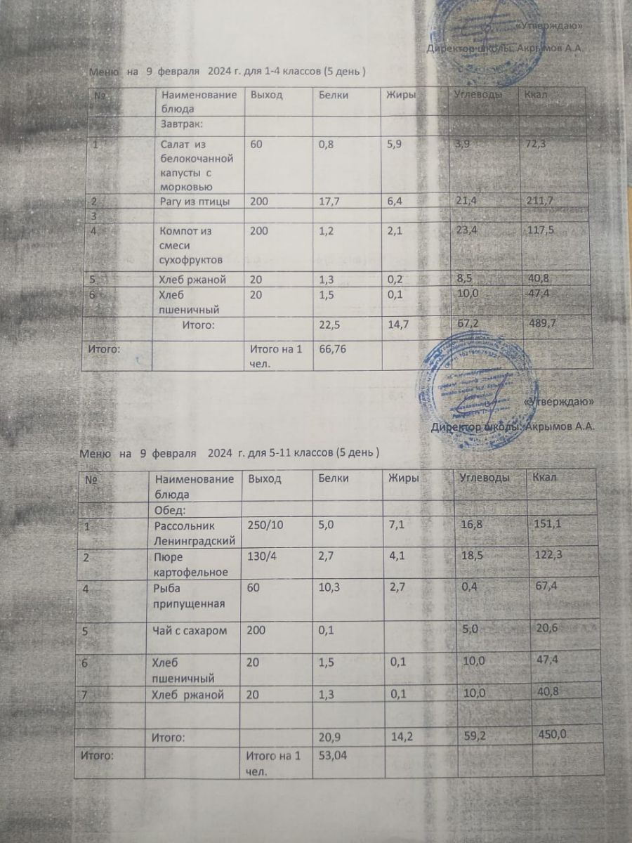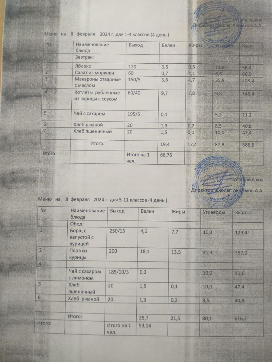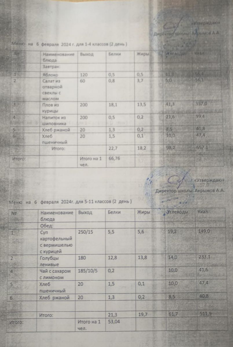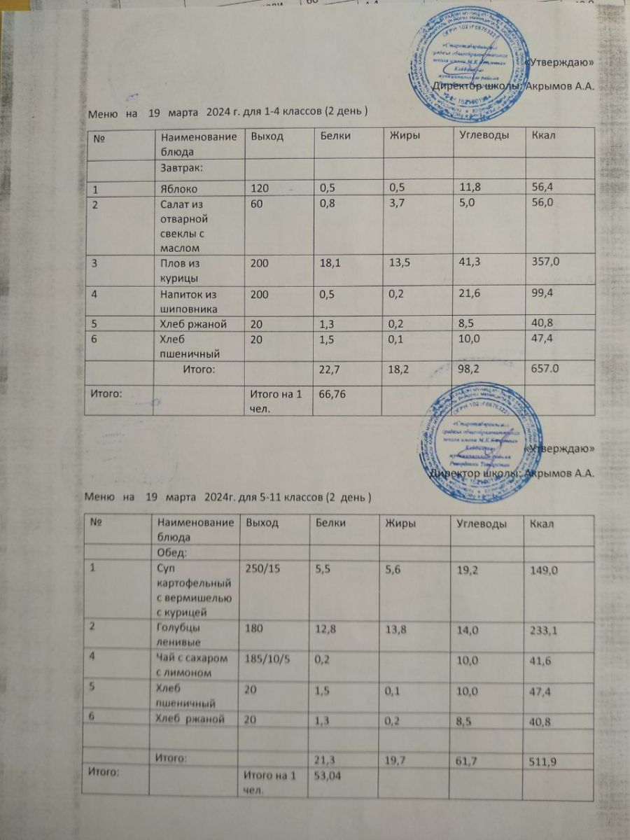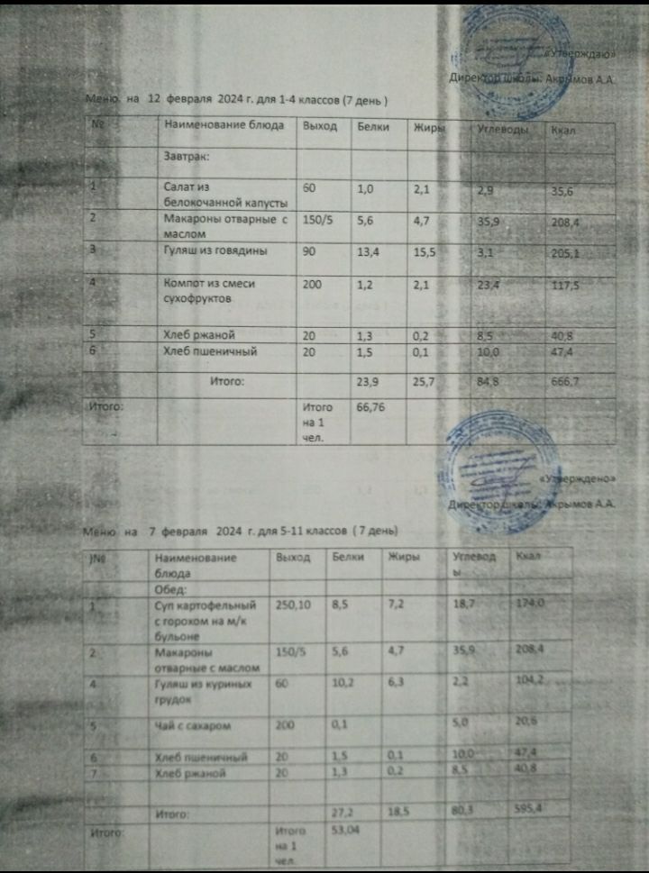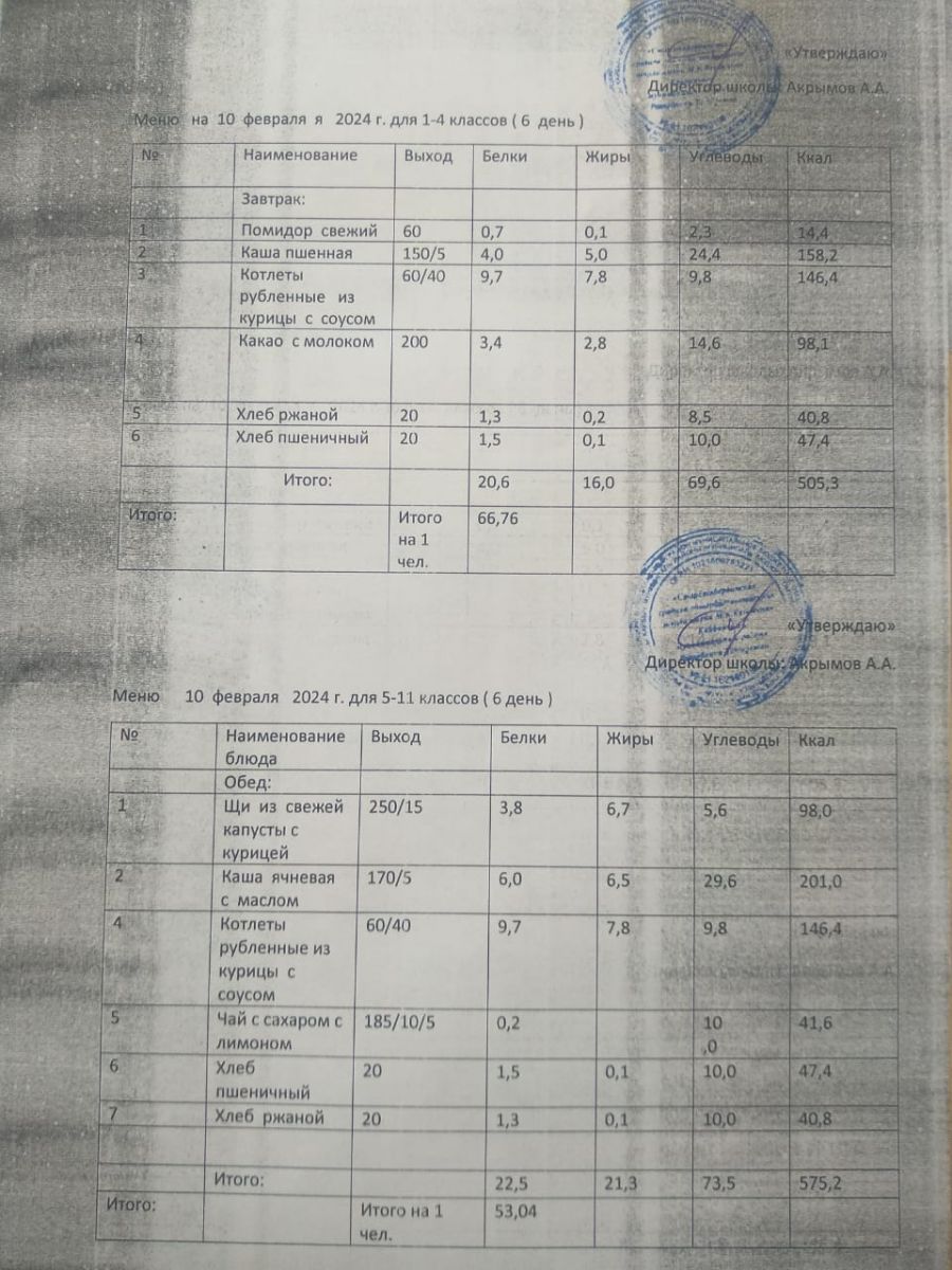 Ежедневное меню учащихся 1-4, 5-11 классов на 2023-2024 уч.год