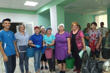 Коллектив Ульянковской основной школы, Надеждинской начальной школы, детских садов "Солнышко" и "Земляничка", сотрудники психолого-педагогической службы, работники школы помогли коллегам МБОУ "Старотябердинская СОШ" в уборке территории после капитального ремонта.